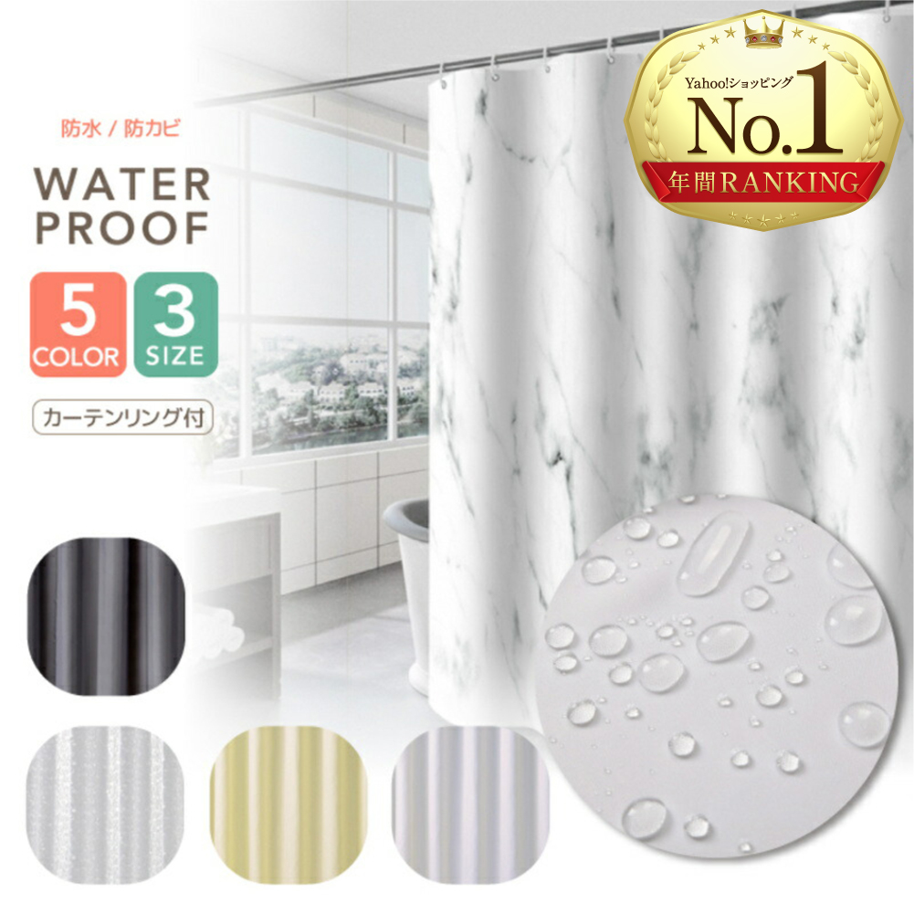シャワーカーテン 防カビ おしゃれ 透明 北欧 180 防水 撥水 シンプル バス カーテン 浴室 脱衣所 バスルーム お風呂 仕切り カーテンリング付属 ユニットバス