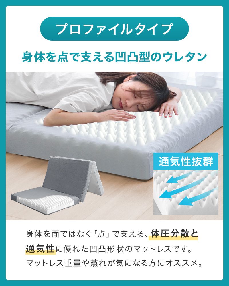 マットレス シングル 三つ折り 高反発マットレス 折りたたみ 敷布団 腰痛 ベッドマットレス カバー付き マットレストッパー ベットマット プロファイル