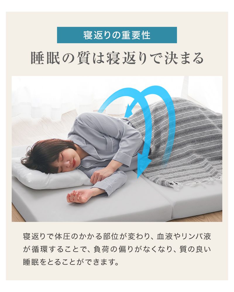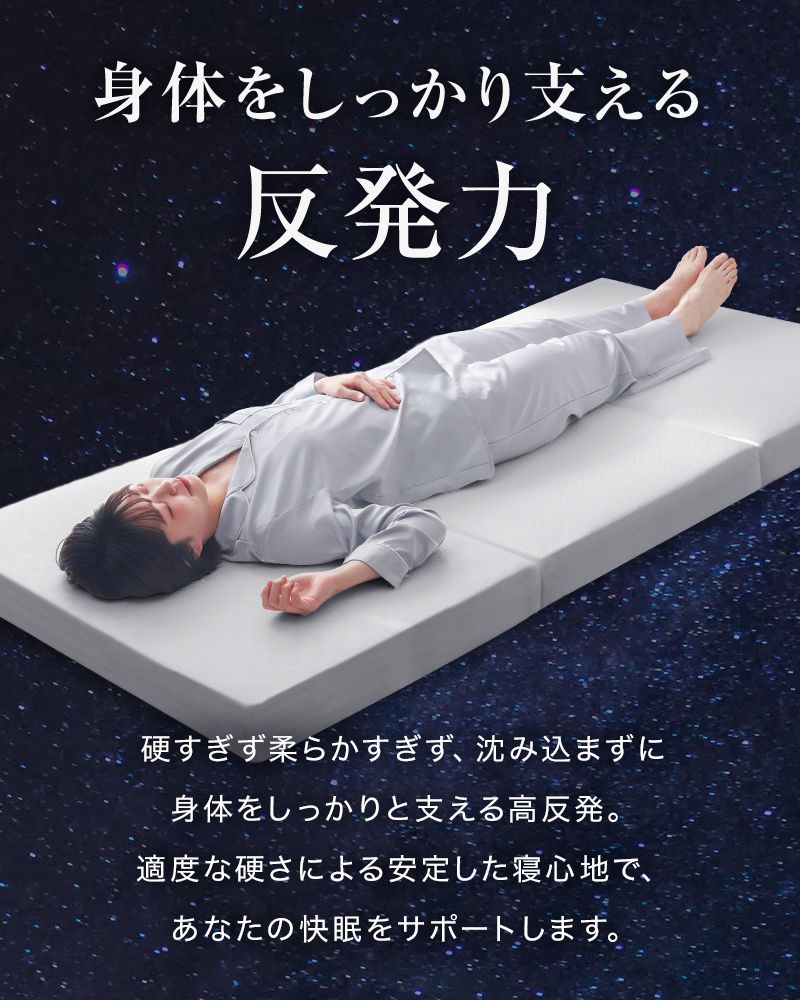 適度な硬さで身体をしっかり支える、三つ折りタイプの高反発マットレスです。