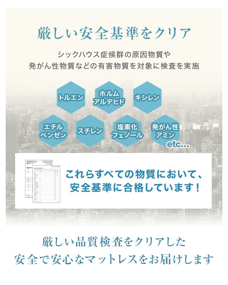 柔らかいマットレスとは違い、身体の沈み込みを軽減した腰に優しい寝心地です。