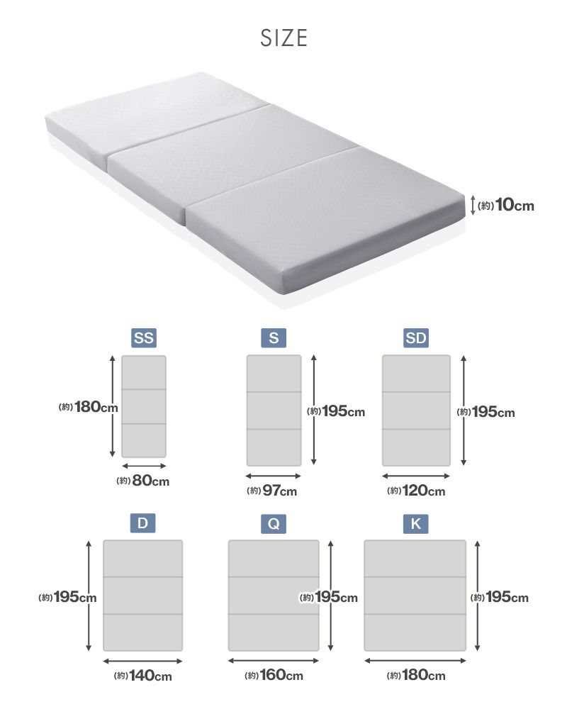サイズ:(約)195×97×10cm(シングルサイズ)