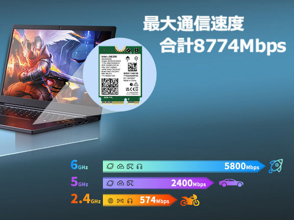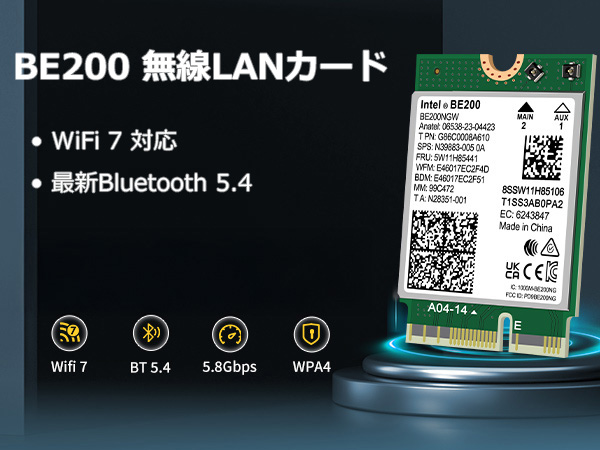 【最新Wi-Fi 7対応】BE200はインテル WiFi7テクノロジーを採用の無線LANカードです。2.4GHz・5GHz・6GHzのトライバンド対応で、動画視聴、オンラインゲーム、大容量データ転送に適しています。
