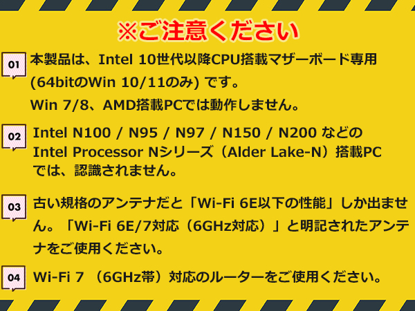 【非対応のCPU】Intel N100 / N150 / N200 などの Intel Processor Nシリーズ、Intel Celeron / Pentium Silver 系CPU搭載機は非対応です。Intel 第8世代以前のCPUは非対応・動作保証外です。