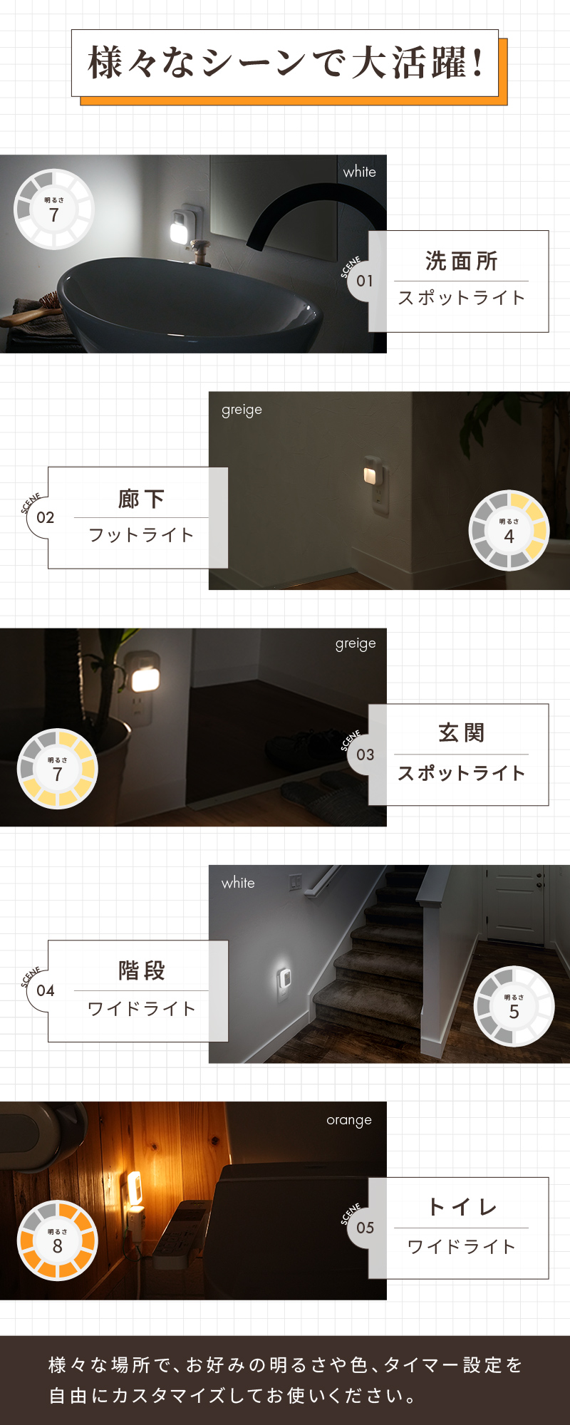 フットライトタイプ(ホワイト/グレージュ)【3色切り替え(電球色/昼白色/昼光色)】