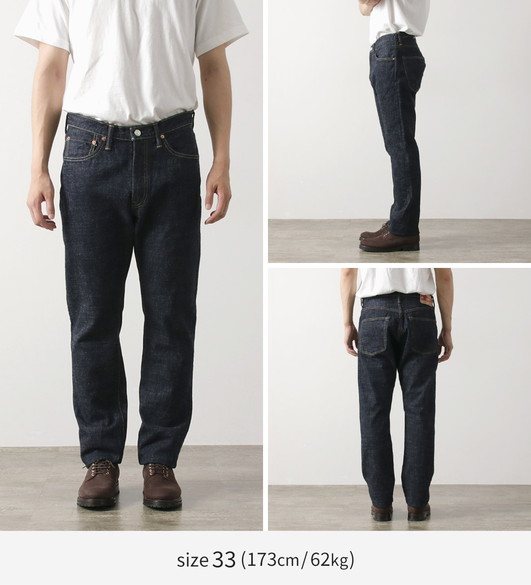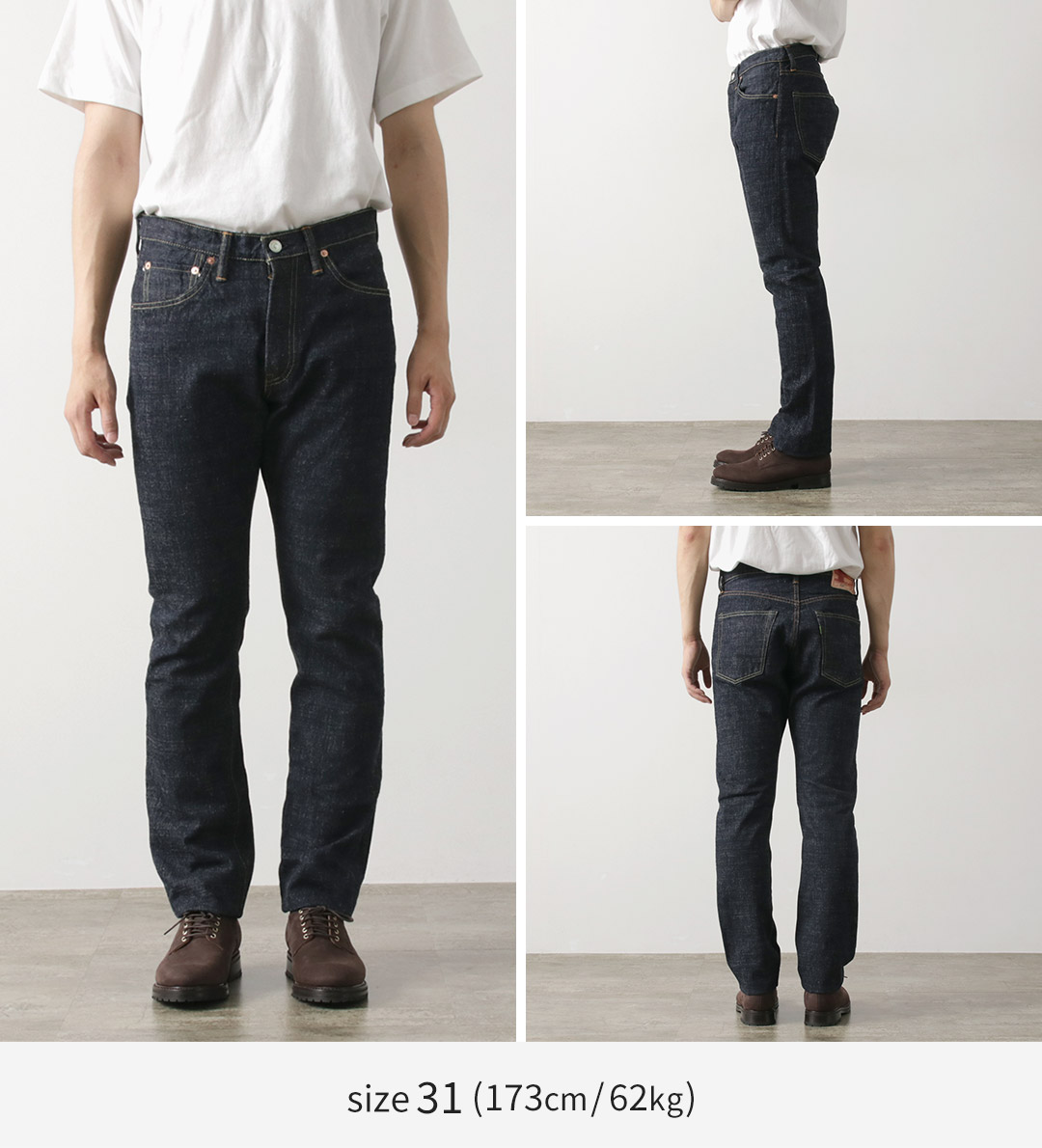 また、スッキリとした細身のテーパードシルエットに仕上げられており、このデニムが持つ独特の風合い、色落ちやアタリ、穿き心地を存分にお楽しみいただけます。