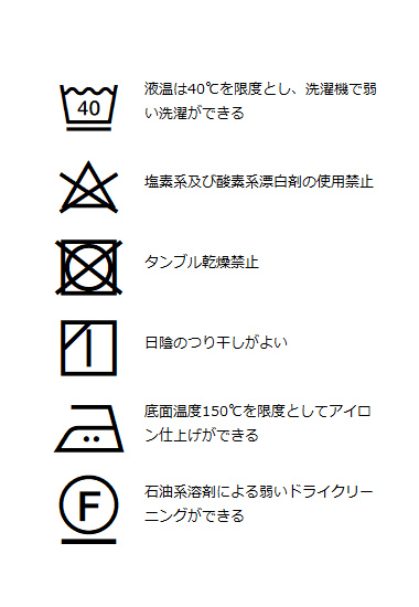 | 洗濯表記 | 詳しくはこちら⇒ |