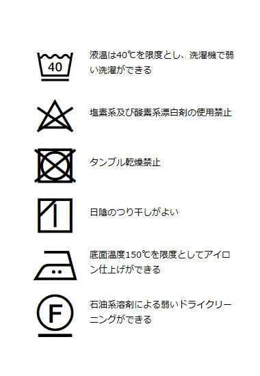 | 洗濯表記 | 詳しくはこちら⇒ |