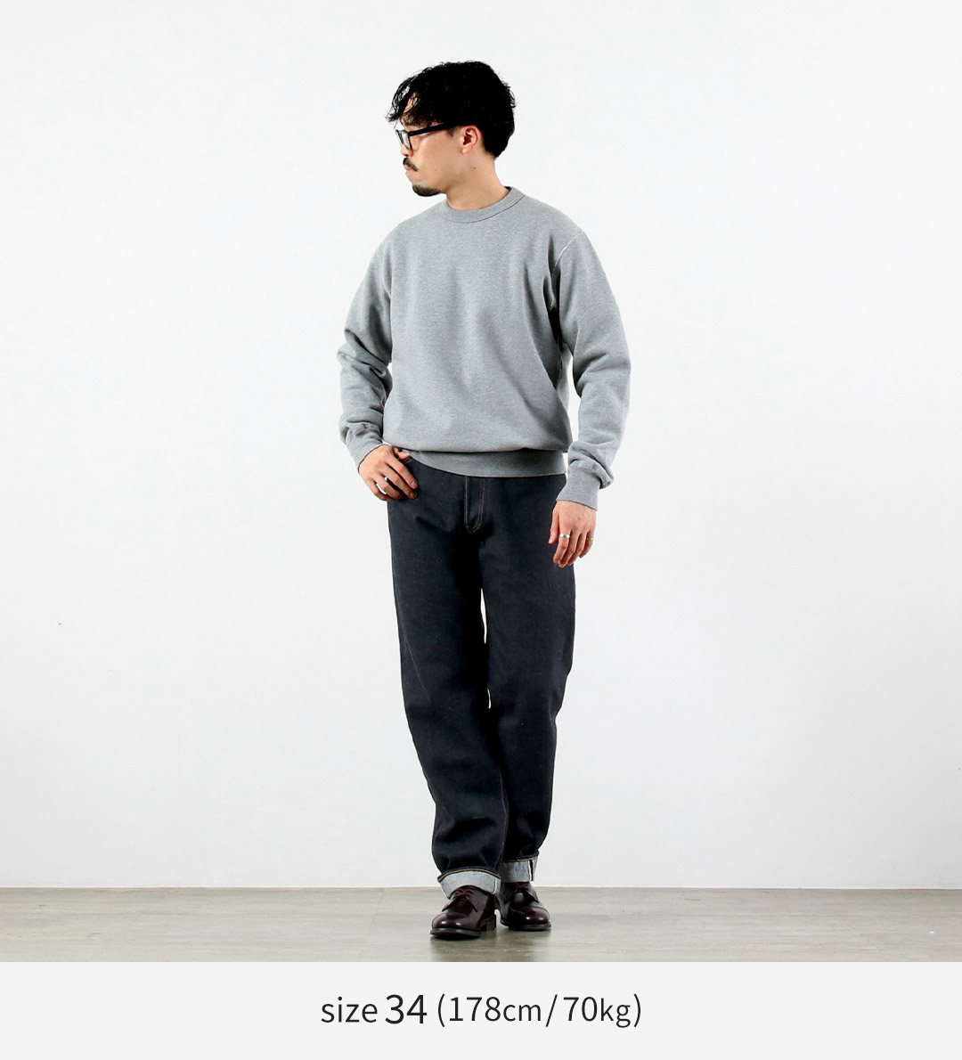 | ●スタッフ 身長・体重:177cm / 73kg 着用サイズ:34 体型タイプ:標準 太ももまわり:標準 フィット感(ウエスト):ジャスト 丈感:やや長め ウエストはベルトなしでも安定感があり、腰位置でしっかり穿けます。新品時は生地のハリを感じますが、穿き込むことでより自分の体に馴染んでいきそうです。 |