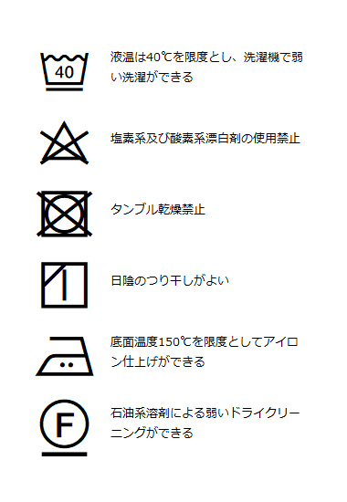 | 洗濯表記 | 詳しくはこちら⇒ |