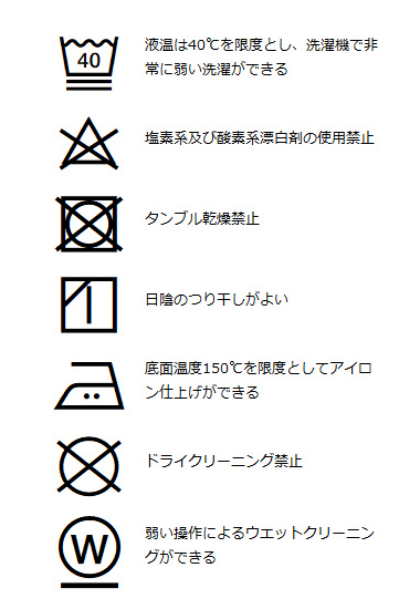 | 洗濯表記 | 詳しくはこちら⇒ |