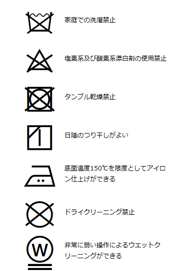 | 洗濯表記 | 詳しくはこちら⇒ |