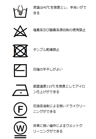 | 洗濯表記 | 詳しくはこちら⇒ |