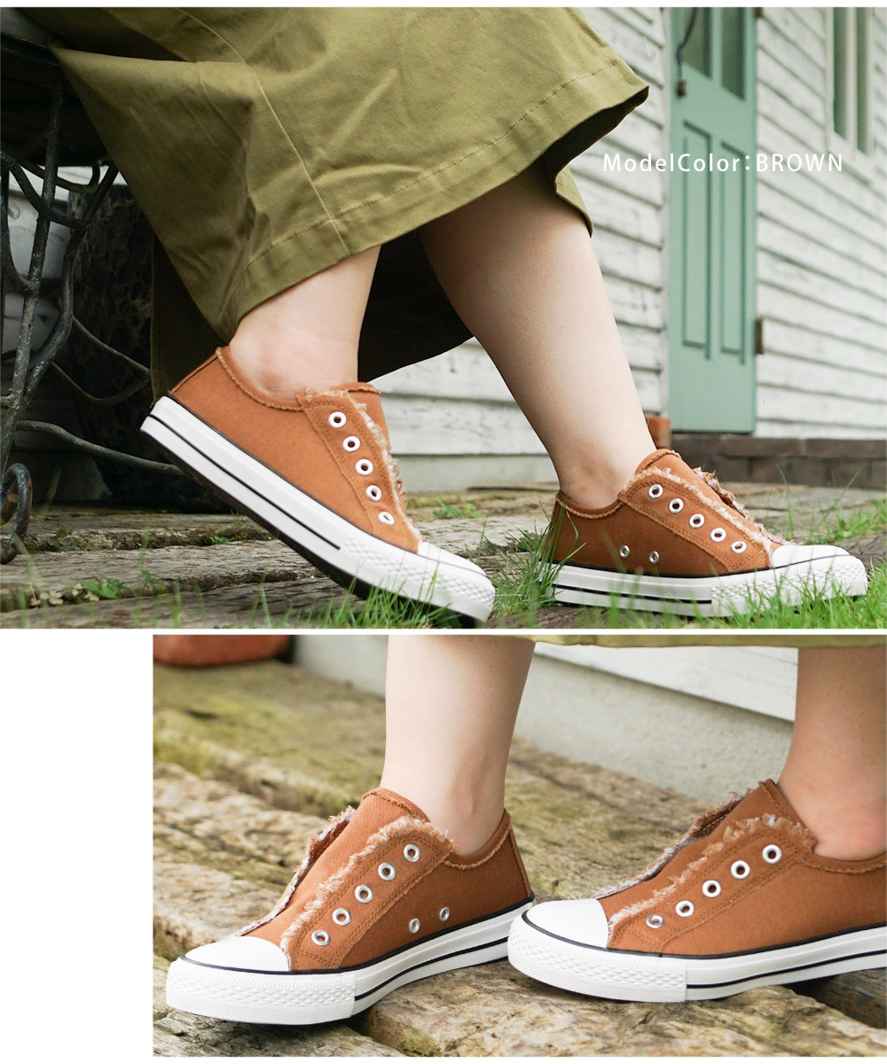シューレースなしで脱ぎ履きしやすく、気軽に履いてサッと出掛けられる!
