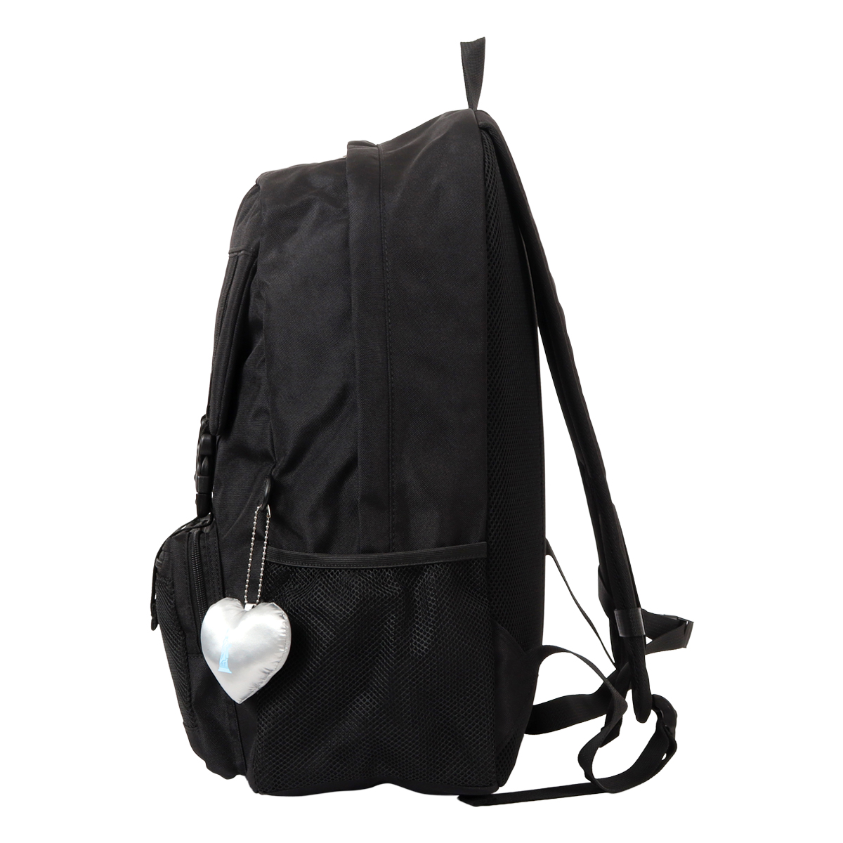 正面のバックルがアイコン的なシリーズ。バックルには上着などを挟んで使用できます。デイジーチェーンを縦に走らせ、トレンド感のあるデザインと、たくさんチャームが付けられることが特徴。生地は撥水生地を使用し、中にはPCポケットも装備。中のボトルポケットは折りたたみ日傘など入れられて便利。