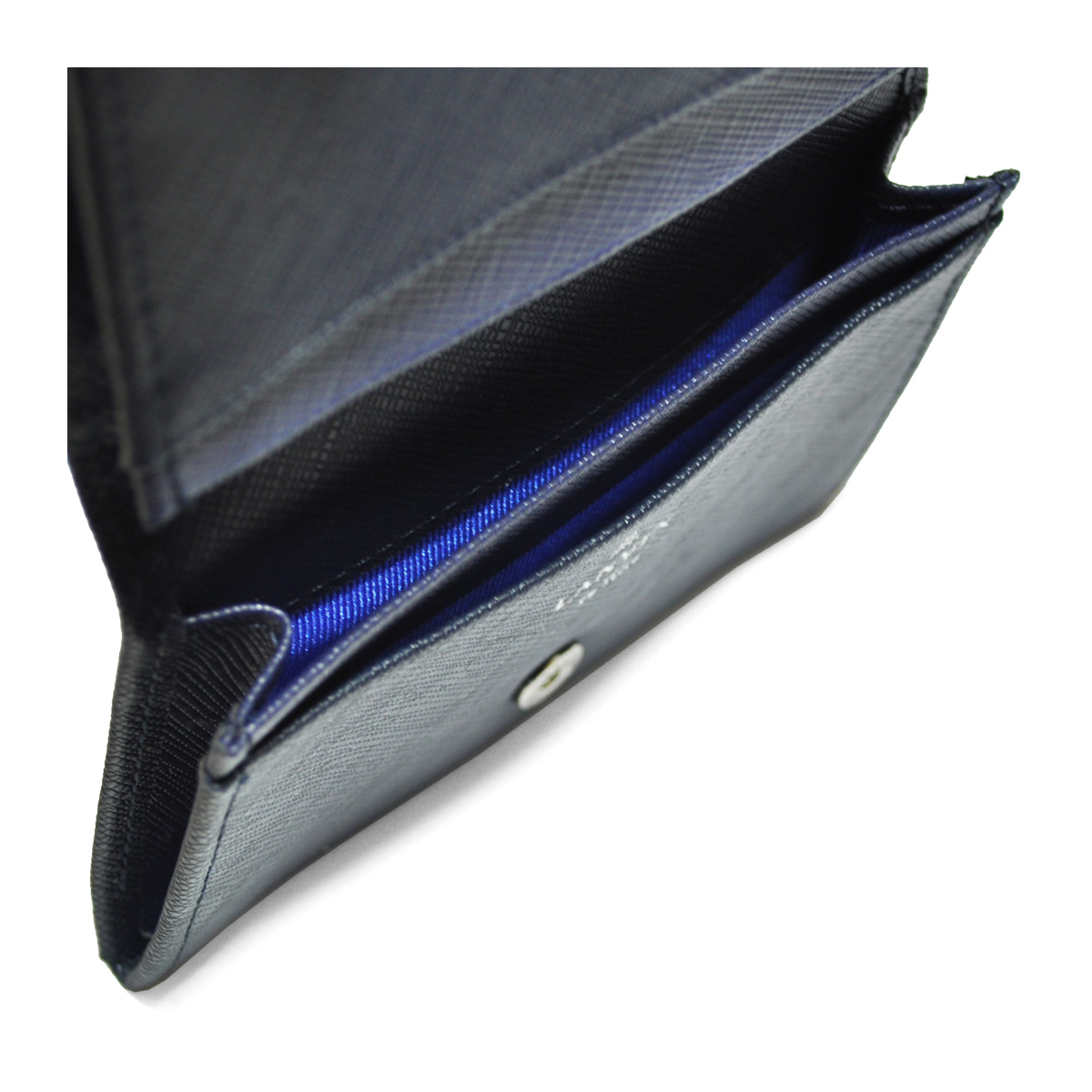 LANVIN en Bleu(ランバンオンブルー)の当社別注モデルの名刺入れが登場。上質な牛革を使用し、表面は細かい型押しを施したサフィアーノ調の高級感のある生地になっています。内装ポケット部分は少し明るめのネイビー生地をコンビカラーとして採用し、遊び心も演出。