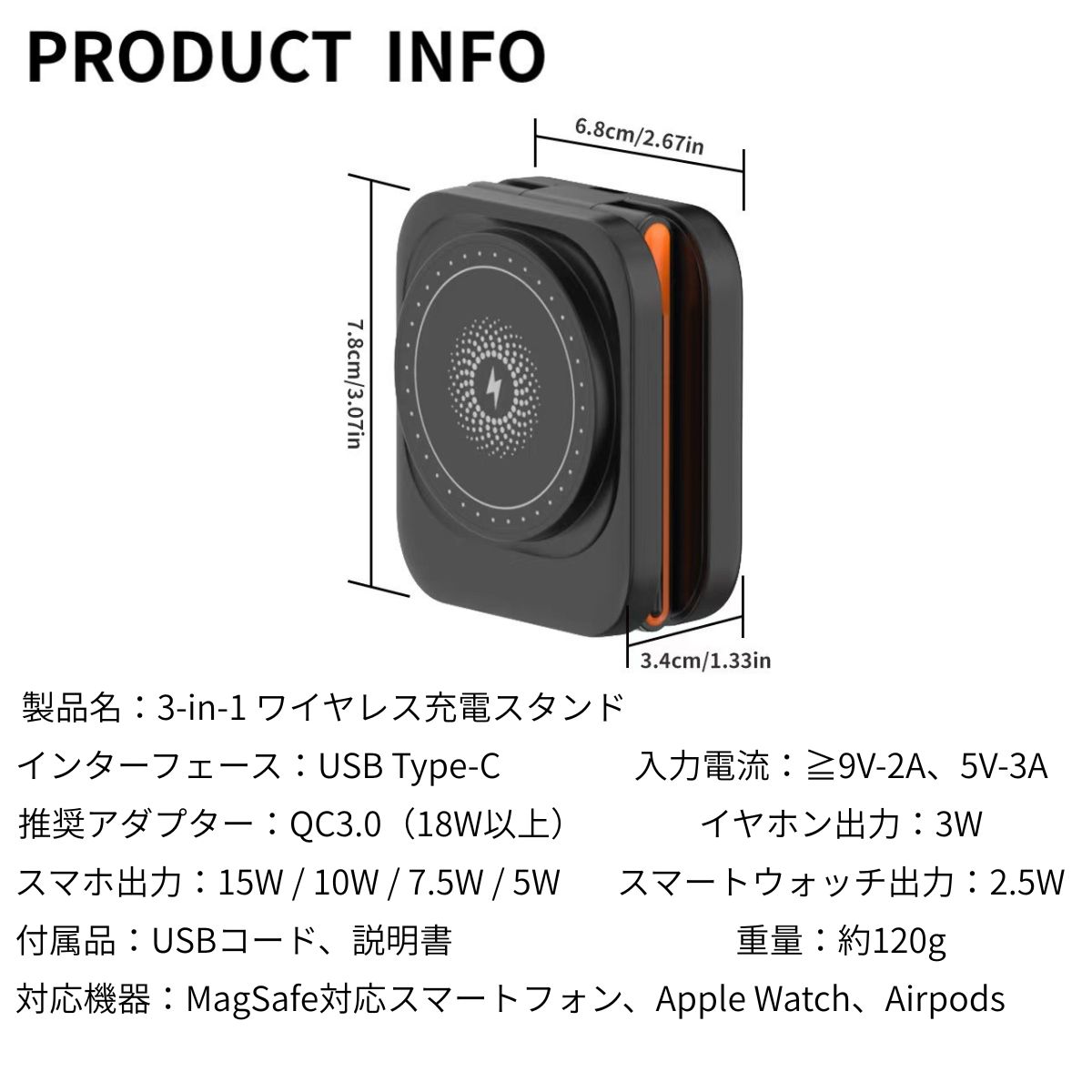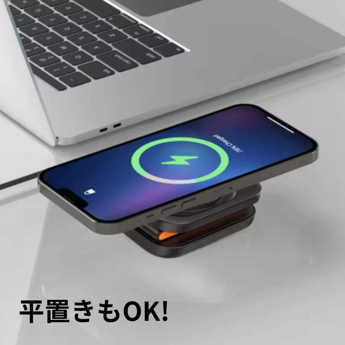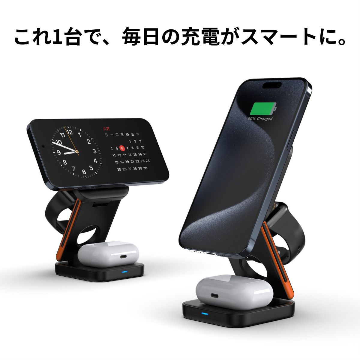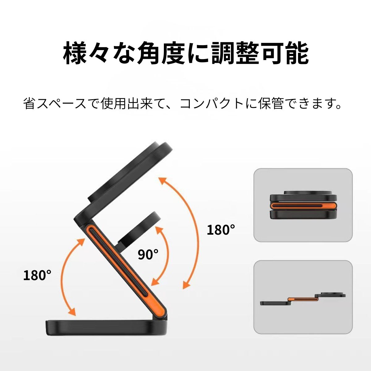3in1 ワイヤレス充電器 MagSafe対応 マグネット式 15W急速充電 折りたたみ スマホ スタンド iPhone AppleWatch AirPods 同時充電 Qi