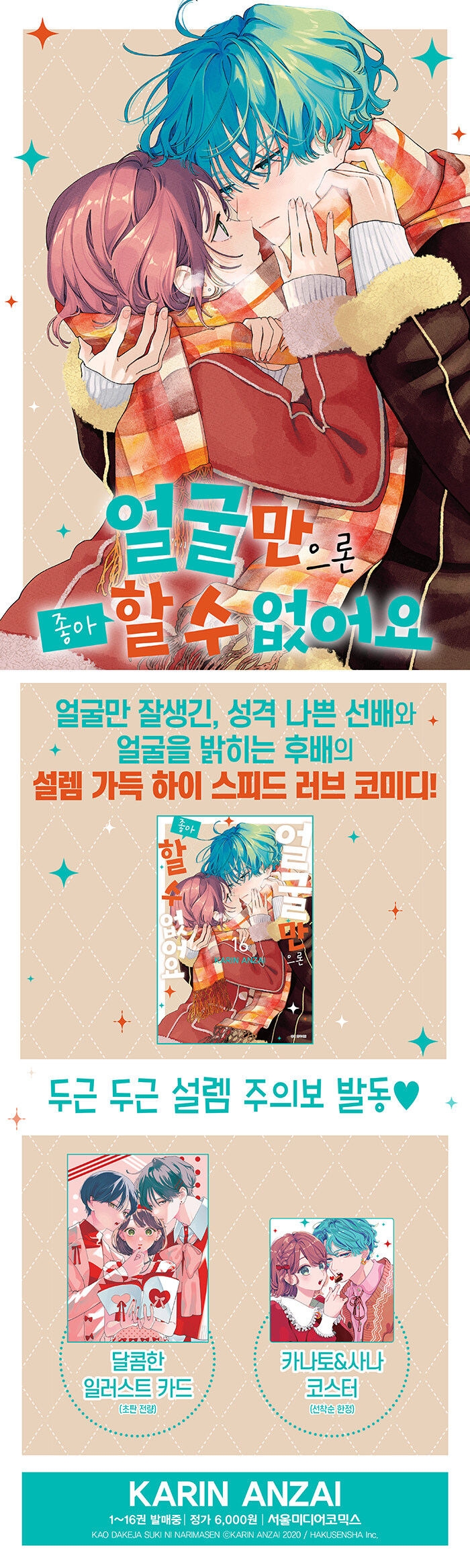 (漫画:マンガ)【ダブル特典版】顔だけじゃ好きになりません 第16巻 (特典:イラストカード + コースター)(韓国語版)