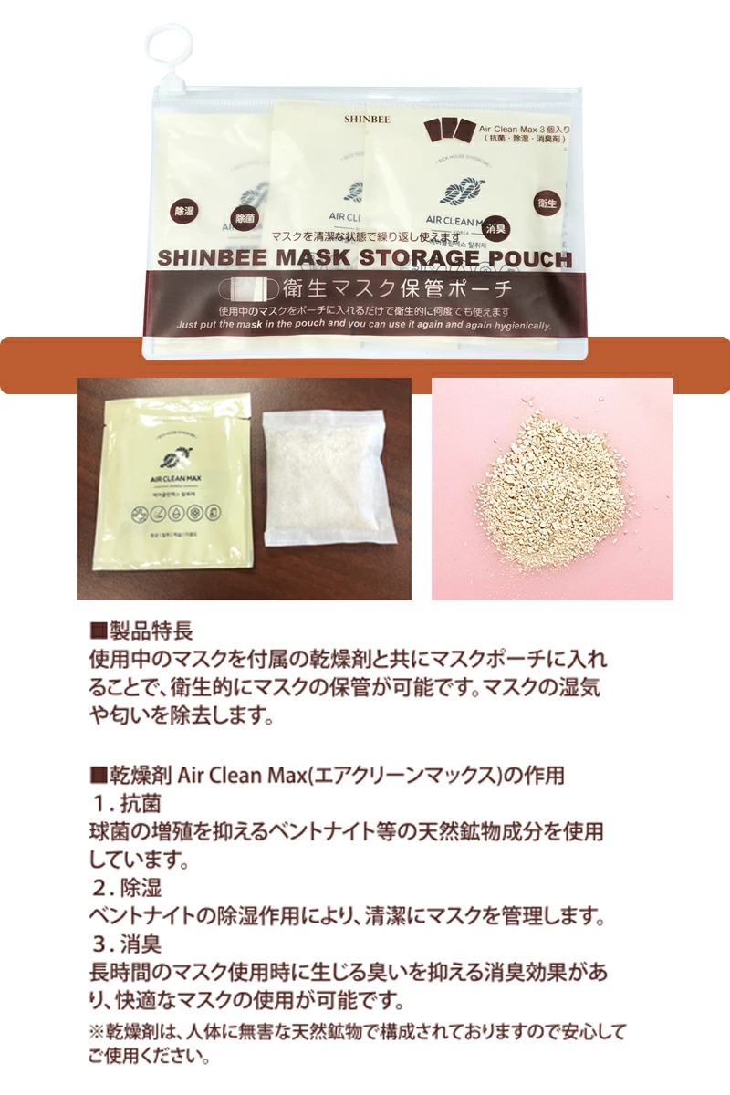 シンビ 衛生マスク 保管ポーチ (1個) 乾燥剤 25g×3個 (予備2個) 抗菌 消臭