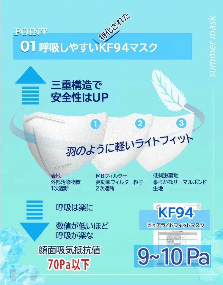 KF94マスク 20枚 正規品 韓国製 ピュアライトフィット 不織布マスク 個包装 三層構造 耳痛くない 飛沫 花粉 UV 5色