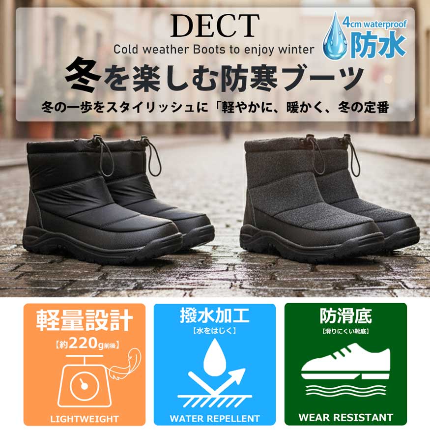 ブーツ メンズ 防水 防滑 スノーブーツ ブーツ レインブーツ レインシューズ ビジネス 防寒 雨靴 雪 軽い おしゃれ DECT ブランド