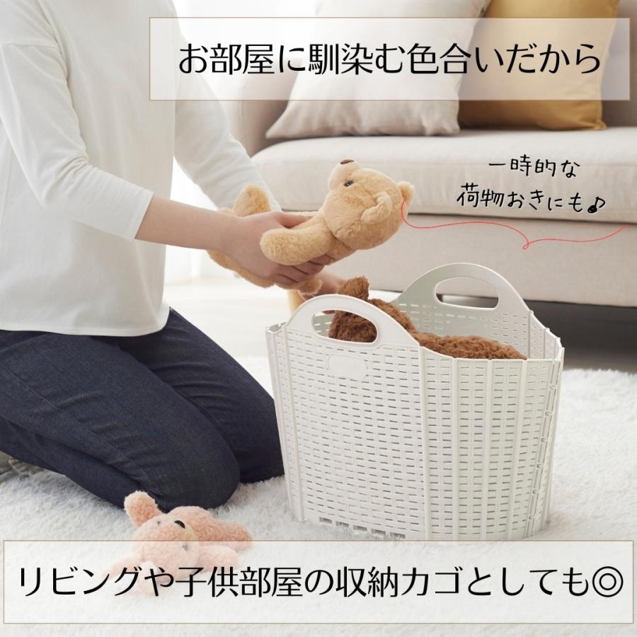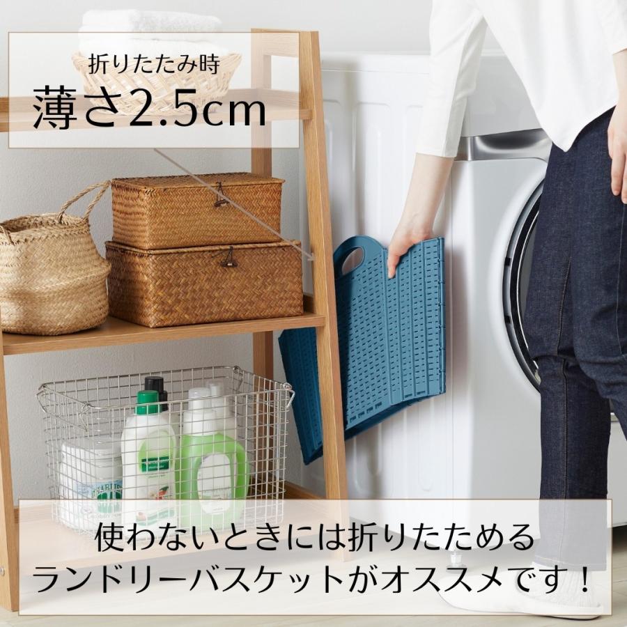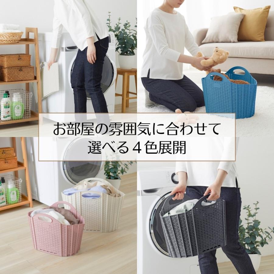 ランドリーバスケット Sサイズ 折りたたみ ラタン調 折りたためる 洗濯カゴ 脱衣かご 洗濯 収納 防水 スリム 厚さ2.5cm 20L アイボリー グレー ブルー ピンク