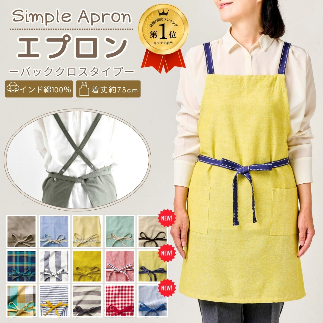 自然のぬくもりを感じられる、インド綿100%のエプロン。