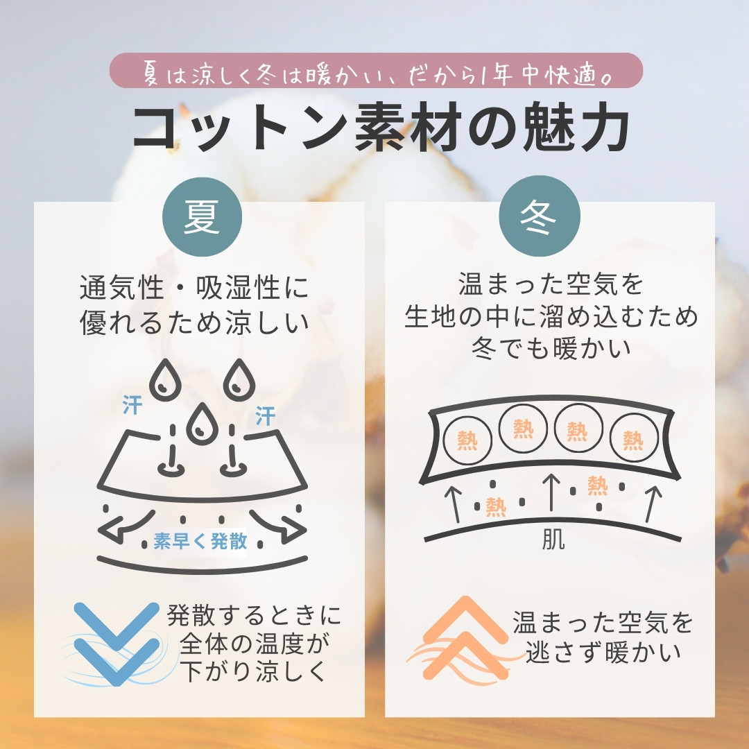 コットン100%の天然素材で柔らかく肌に優しい肌触りです。
