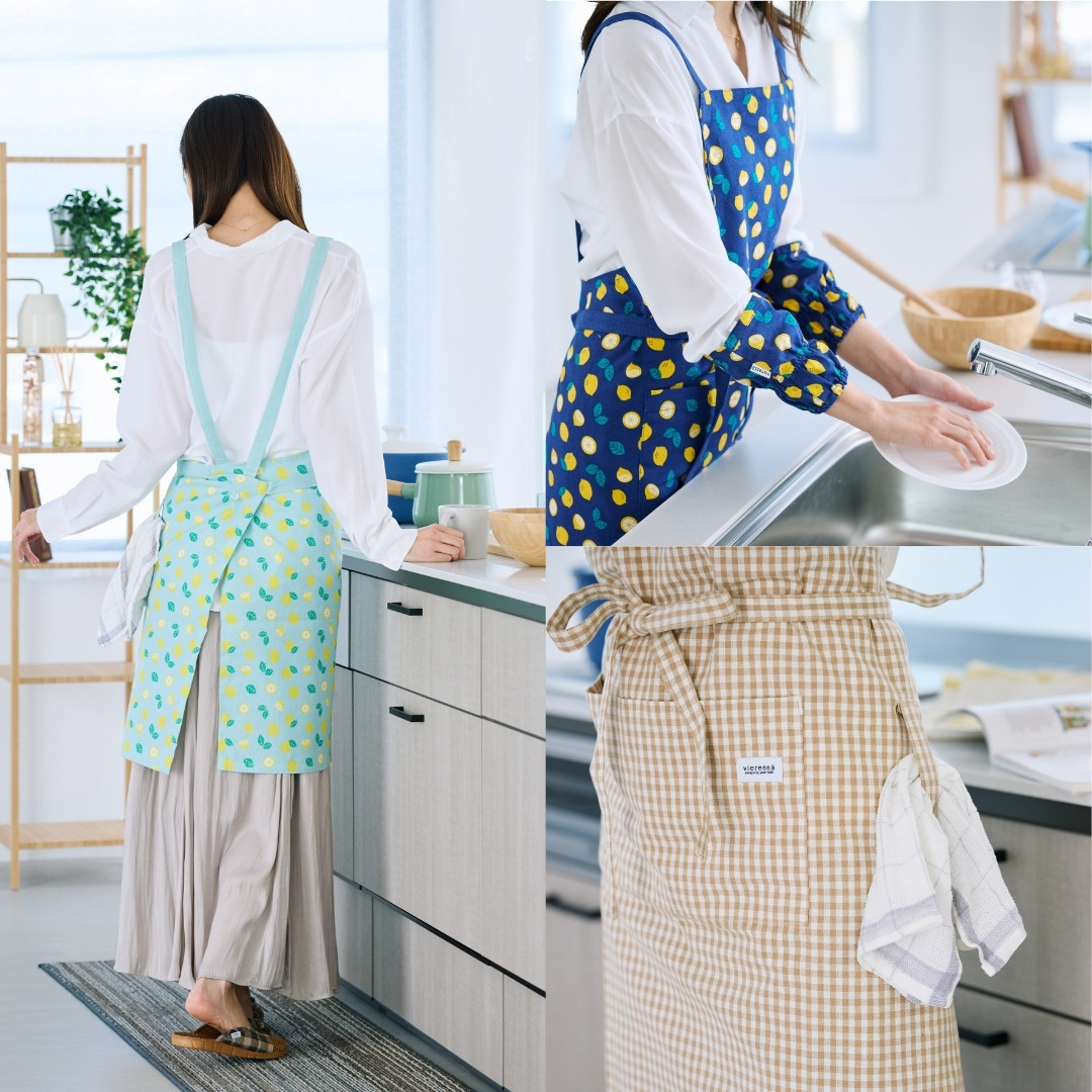 さっと着用しやすいクロス型のエプロンです。