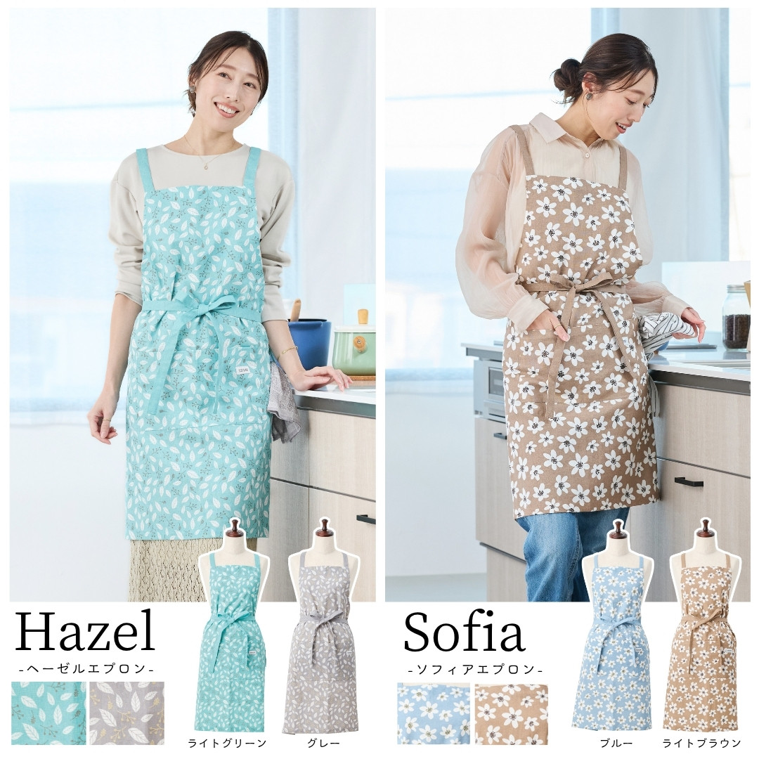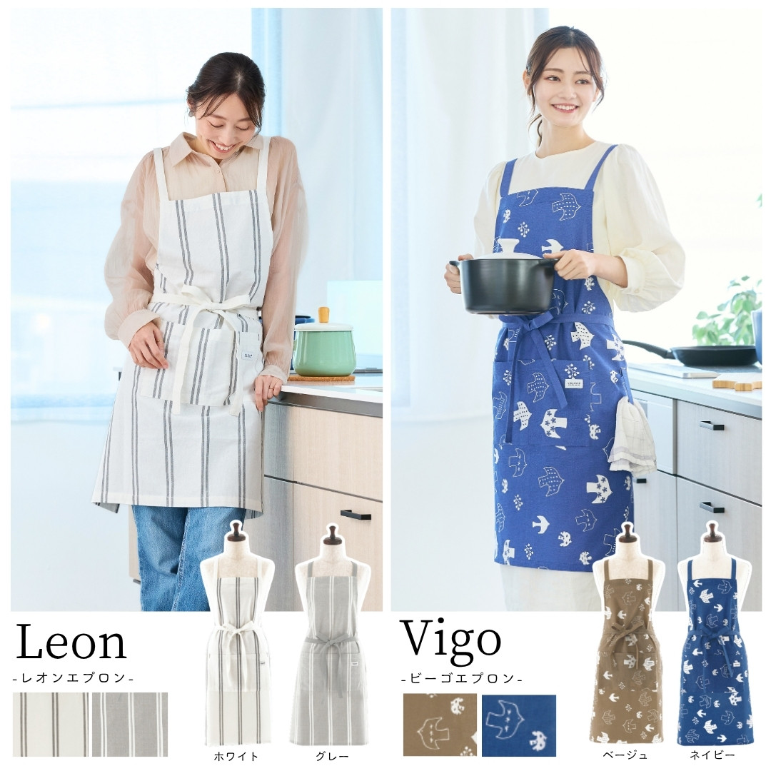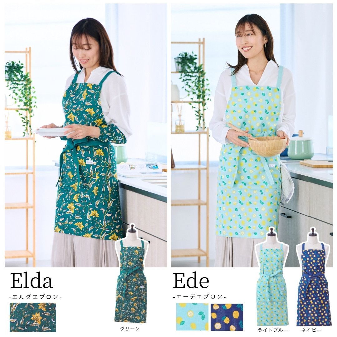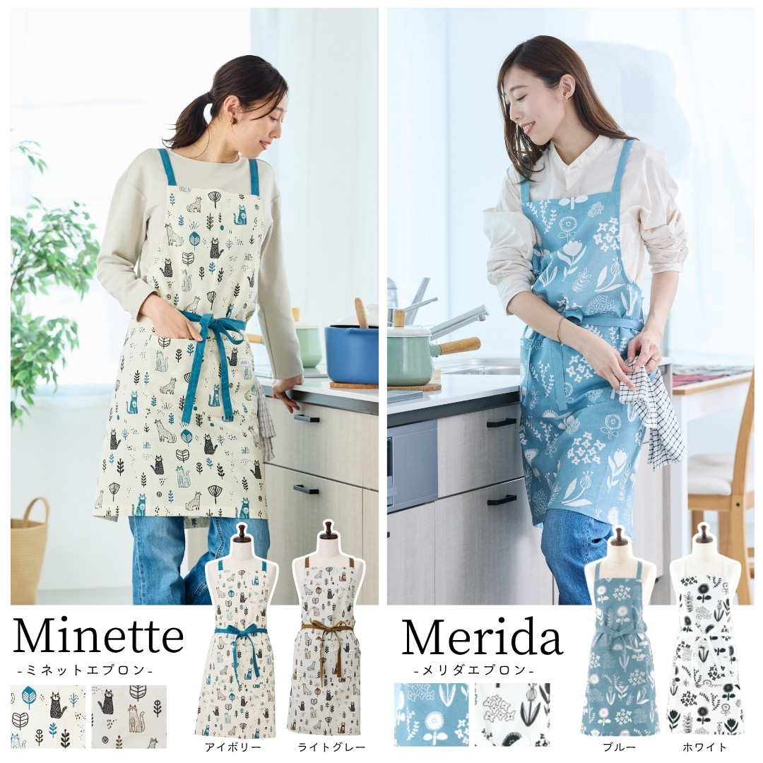 北欧柄で温かみのある、優しいエプロンができました。インド綿のナチュラルな生地感と、使うことにより変化する色合いで自分だけの特別なエプロンになります。