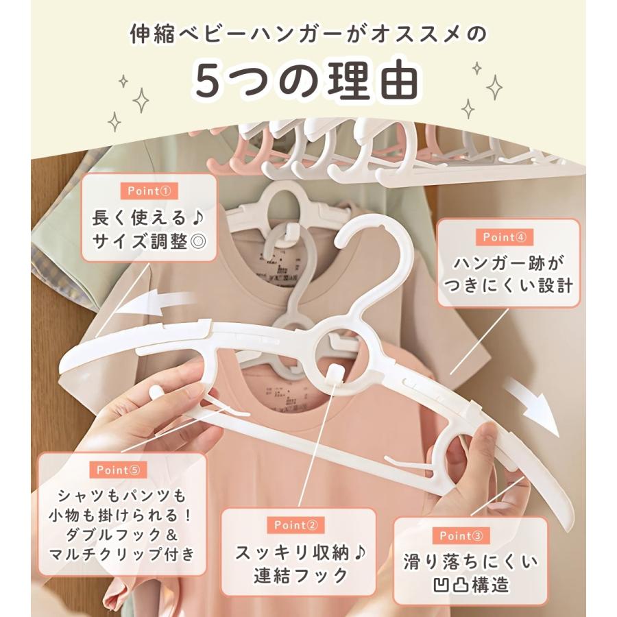 ベビーハンガー 伸縮式 キッズハンガー 子供用ハンガー 10本セット 子供服ハンガー 連結フック 多機能 まとめて干せる 省スペース 小さめ 滑りにくい 洗濯