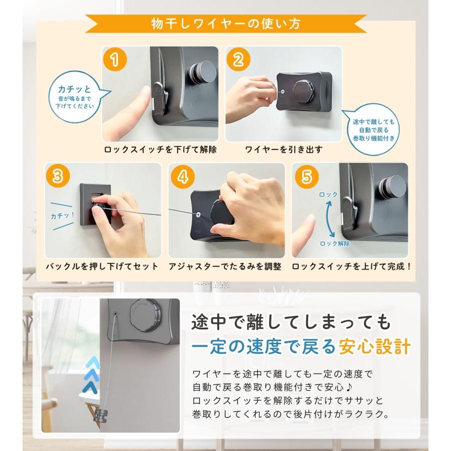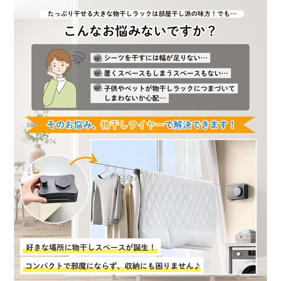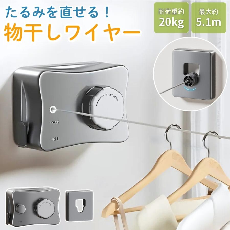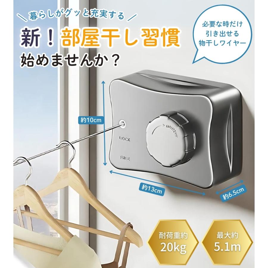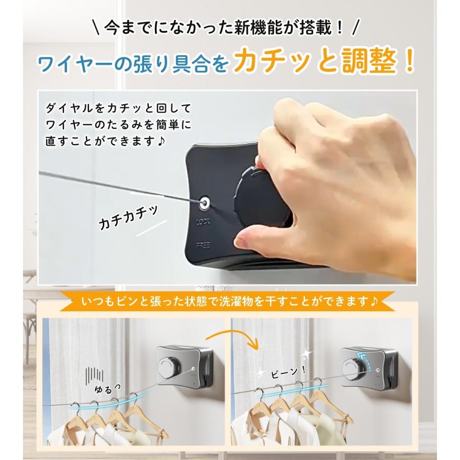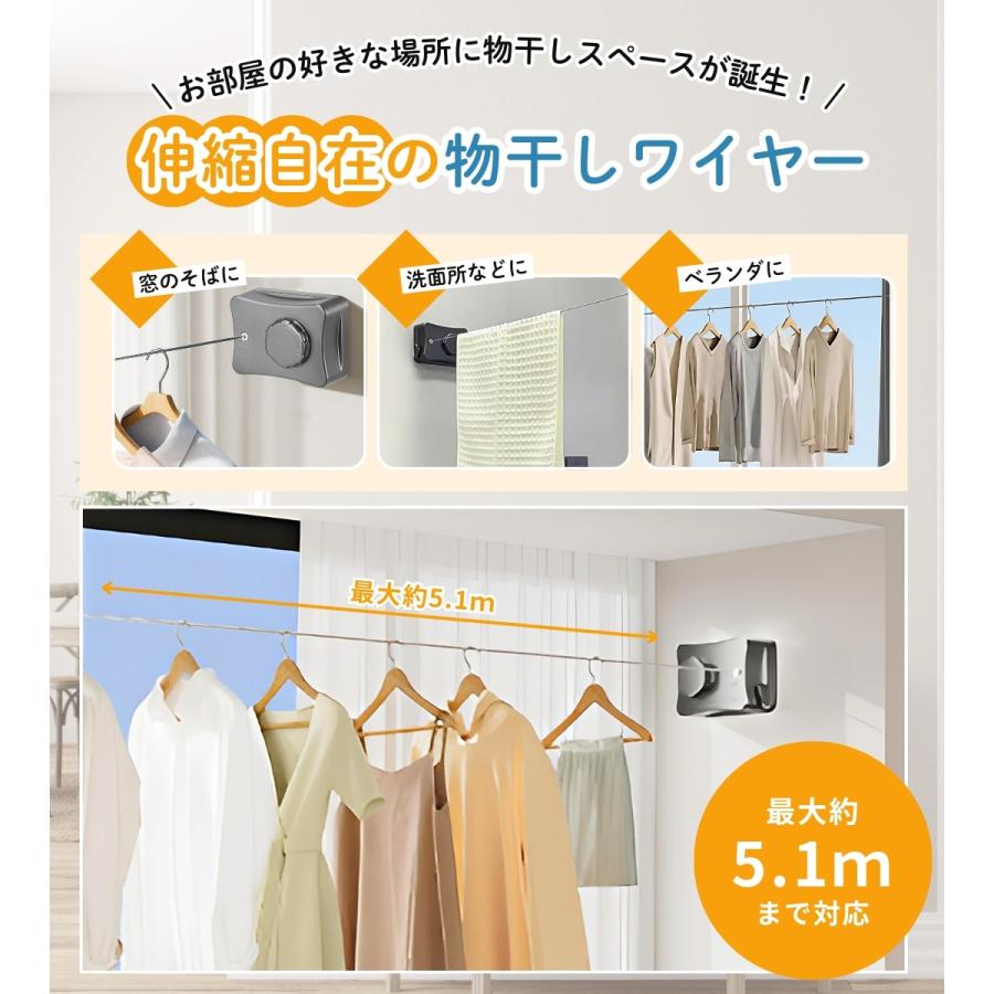 物干しワイヤー 改良版 たるみ防止ダイヤル付 室内物干し 物干しロープ 部屋干し 物干し竿 日本語説明書付 洗濯 布団も干せる 長さ5m 耐荷重20kg 安全機構 収納