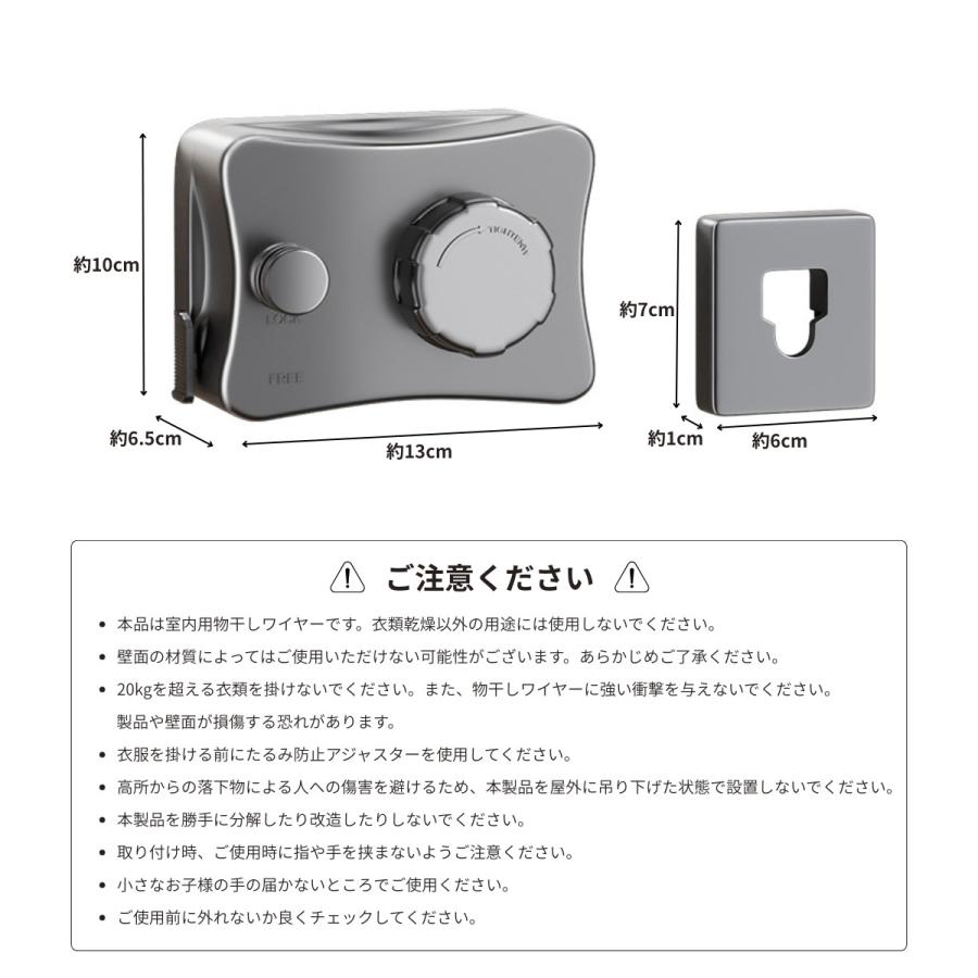 ・20kgを超える衣類を掛けないでください。また、物干しワイヤーに強い衝撃を与えないでください。製品や壁面が損傷する恐れがあります。