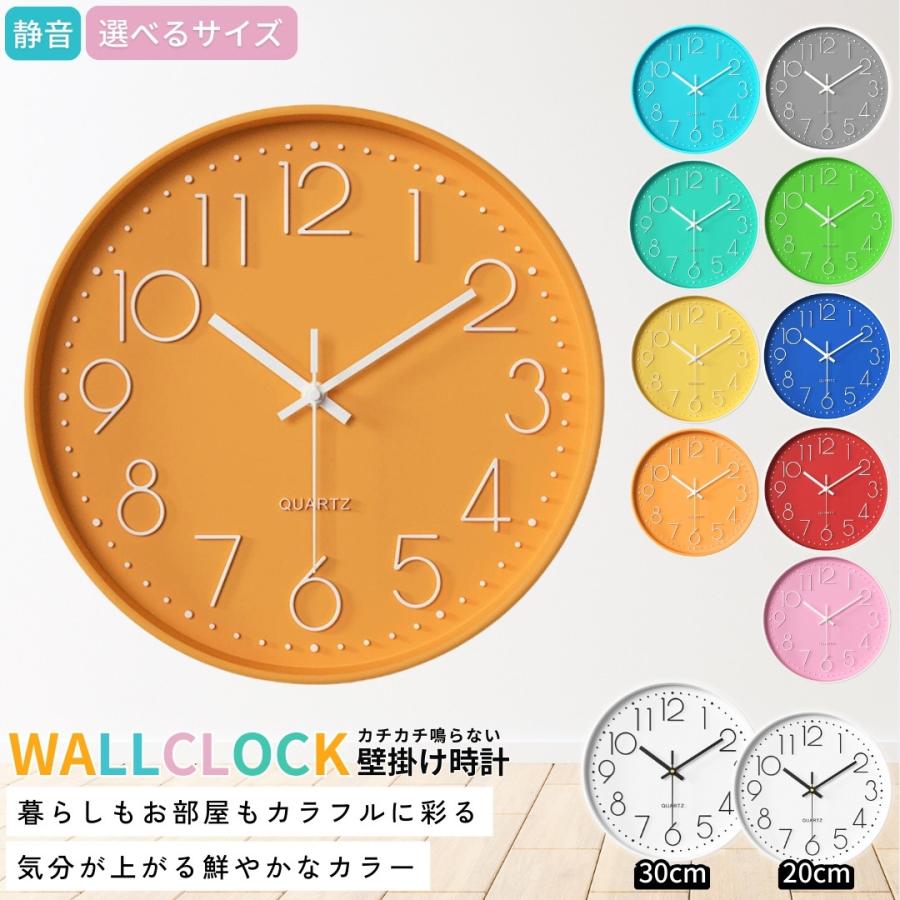 壁掛け時計 静音 アナログ おしゃれ シンプル 掛け時計 見やすい インテリア 直径30cm 直径20cm 大きめ 小さめ かわいい カラフル 時計 アナログ式時計