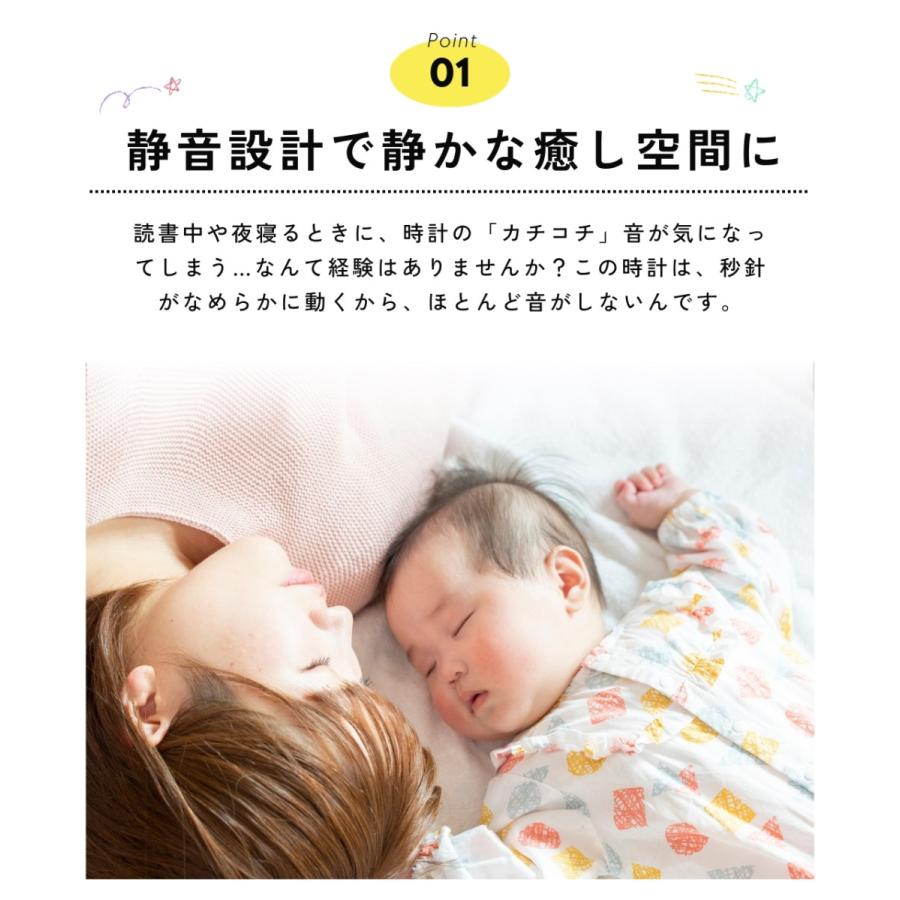 カチカチ秒針の音がしないから、子供部屋や寝室にも♪