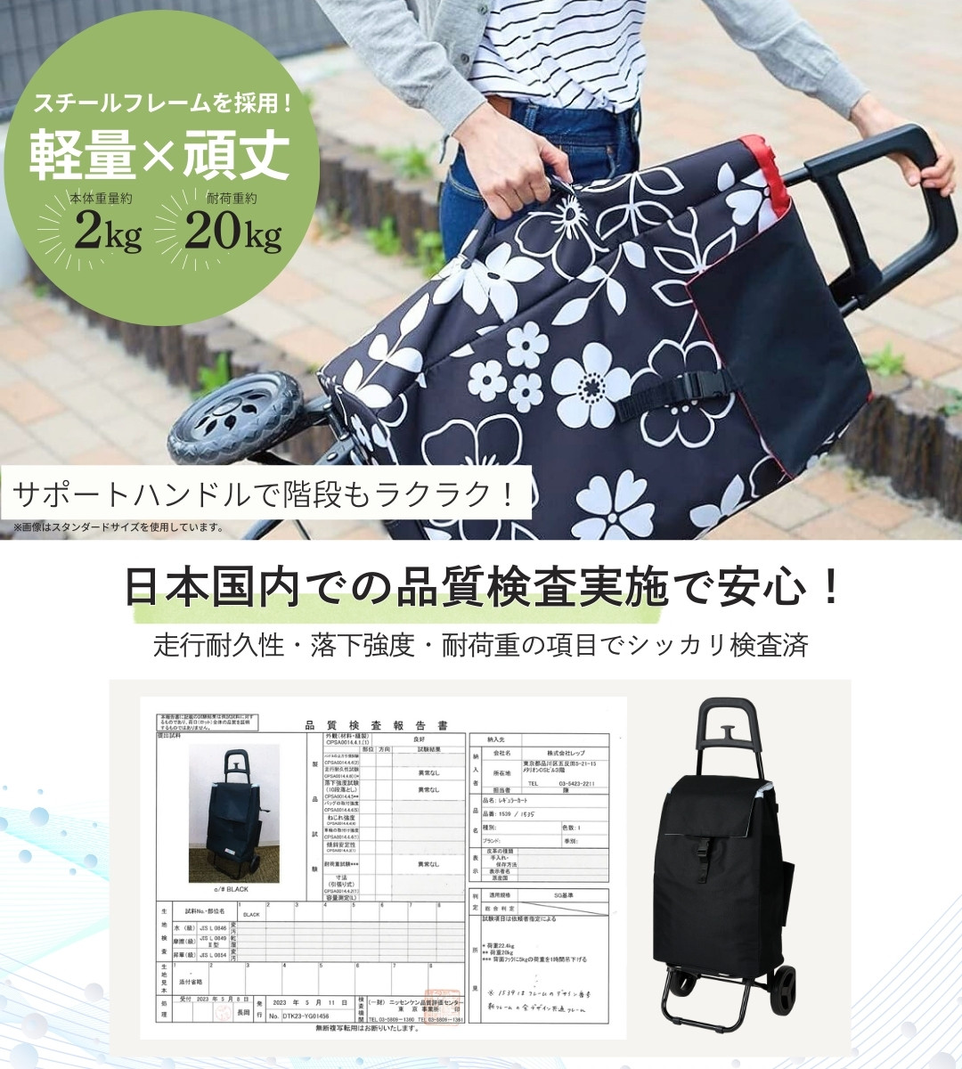 スチールフレームを採用しているのでとっても軽く丈夫です!重い飲料やお米などのお買い物にも安心です。