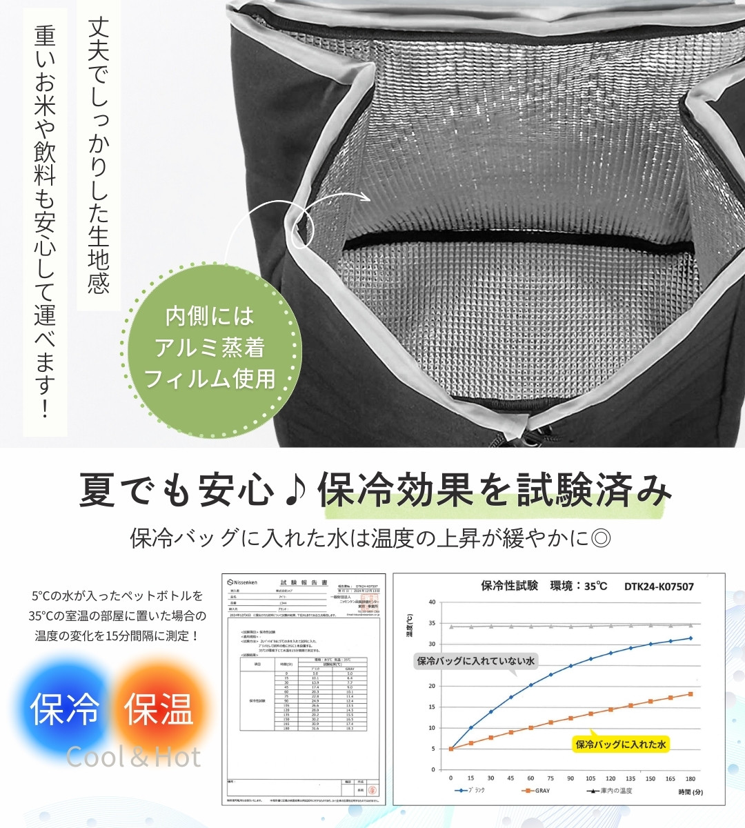 POINT 2: 保冷・保温機能付き!バッグの内側は全面アルミ蒸着シート張り。