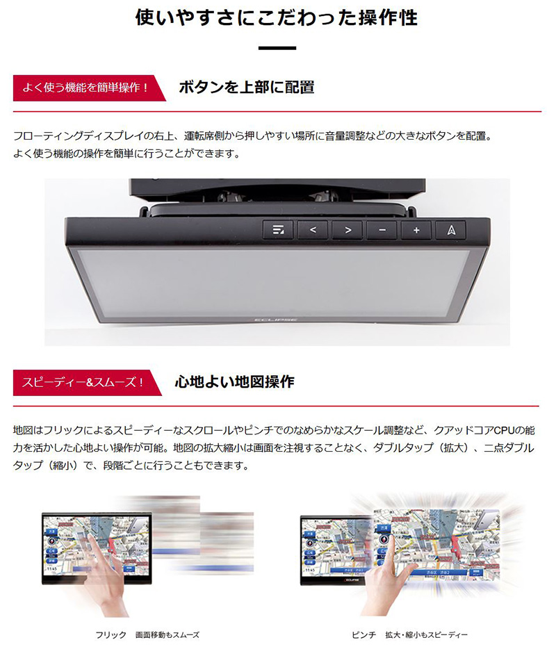 AVN-HS02F DENSO TEN デンソーテン ECLIPSE イクリプス 10.1型 フローティングタイプ カーナビゲーション フルセグ地デジ/Apple CarPlay対応