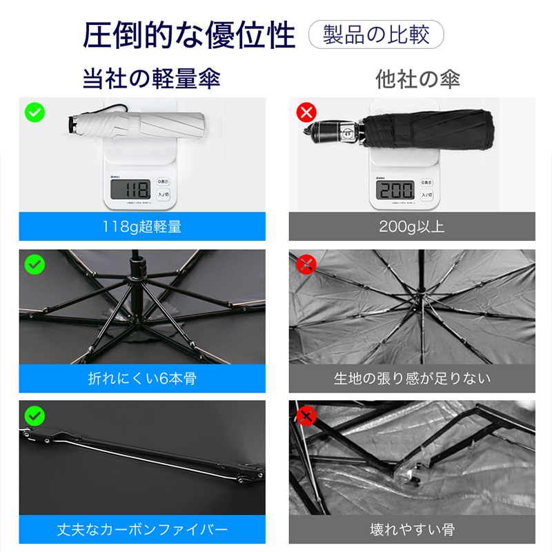 「クーポンで2495円」日傘 折りたたみ 折り畳み傘 完全遮光 118g超軽量 6本骨 紫外線対策 uvカット 日焼け対策 撥水 コンパクト 晴雨兼用 熱中症対策