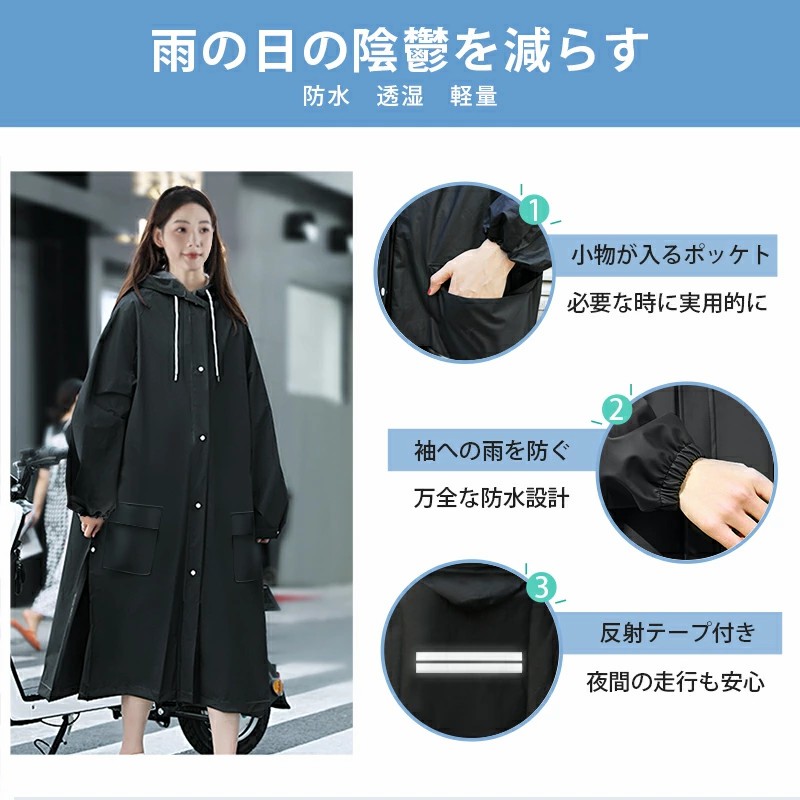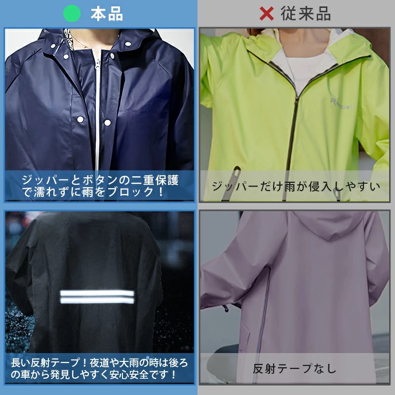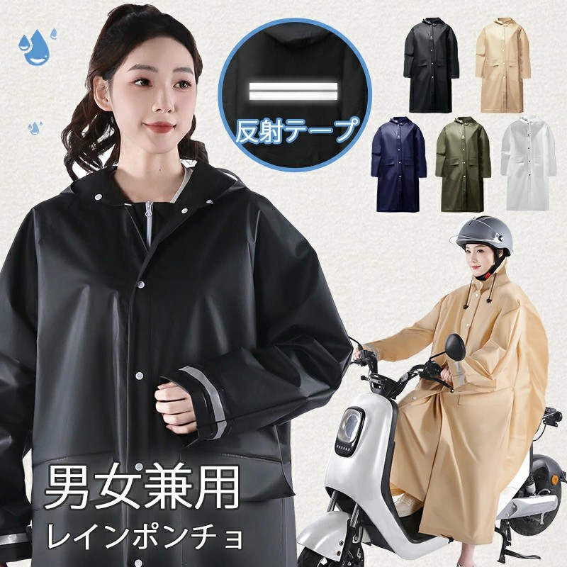 レインコート レインポンチョ 自転車用 膝下カッパ 反射テープ 爆買 レインウェア ポケット付き ツバ付き 梅雨 撥水 大きい ロング 通学通勤 男女兼用 新生活
