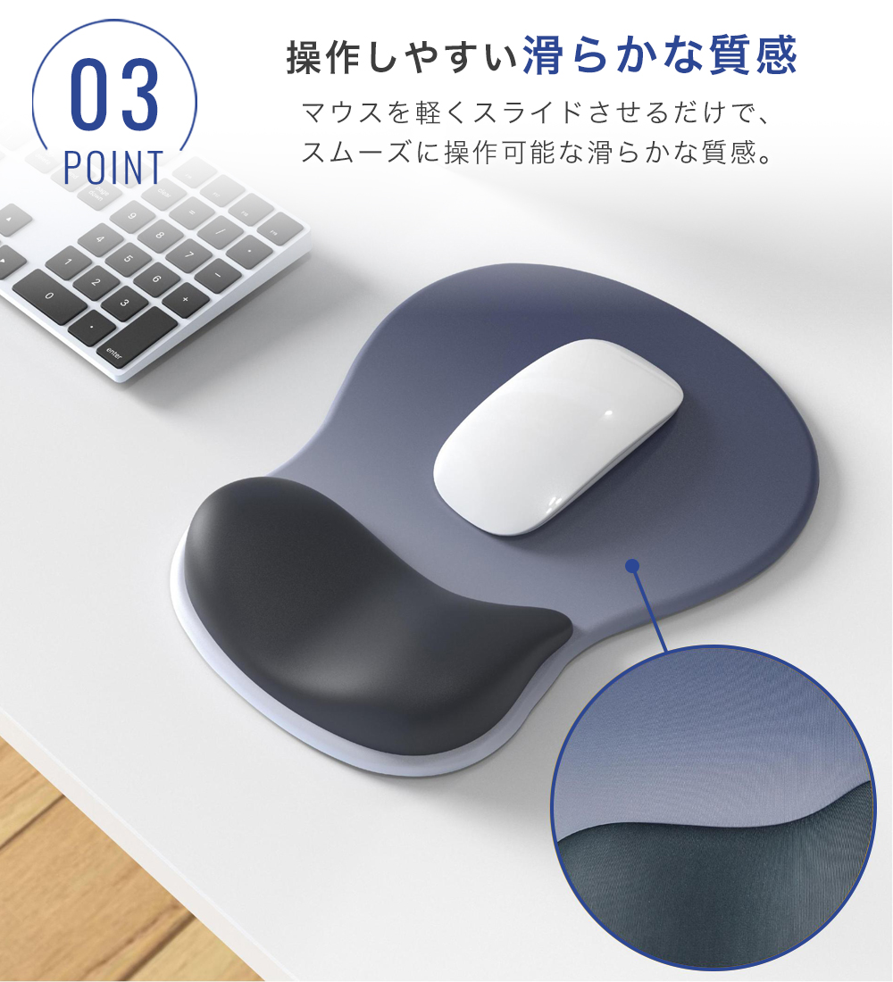 やさしいクッションで手首を守る高機能マウスパッドです。