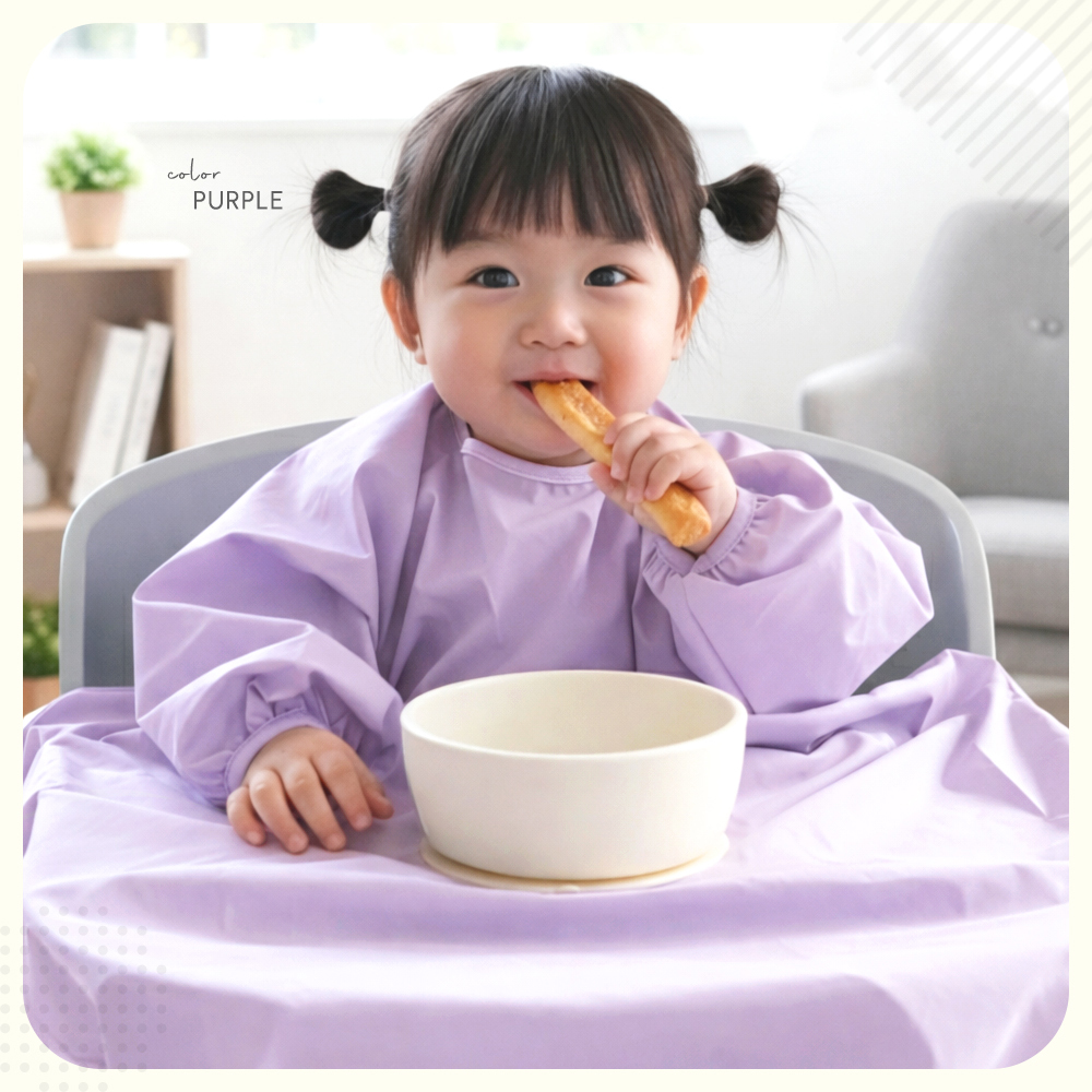 食事エプロン 長袖 ベビーエプロン 保育園 食べこぼし 離乳食 掴み食べ 撥水 収納袋 男の子 女の子 赤ちゃん おしゃれ 子供用 ベビー用品 幼児 出産祝い 無地