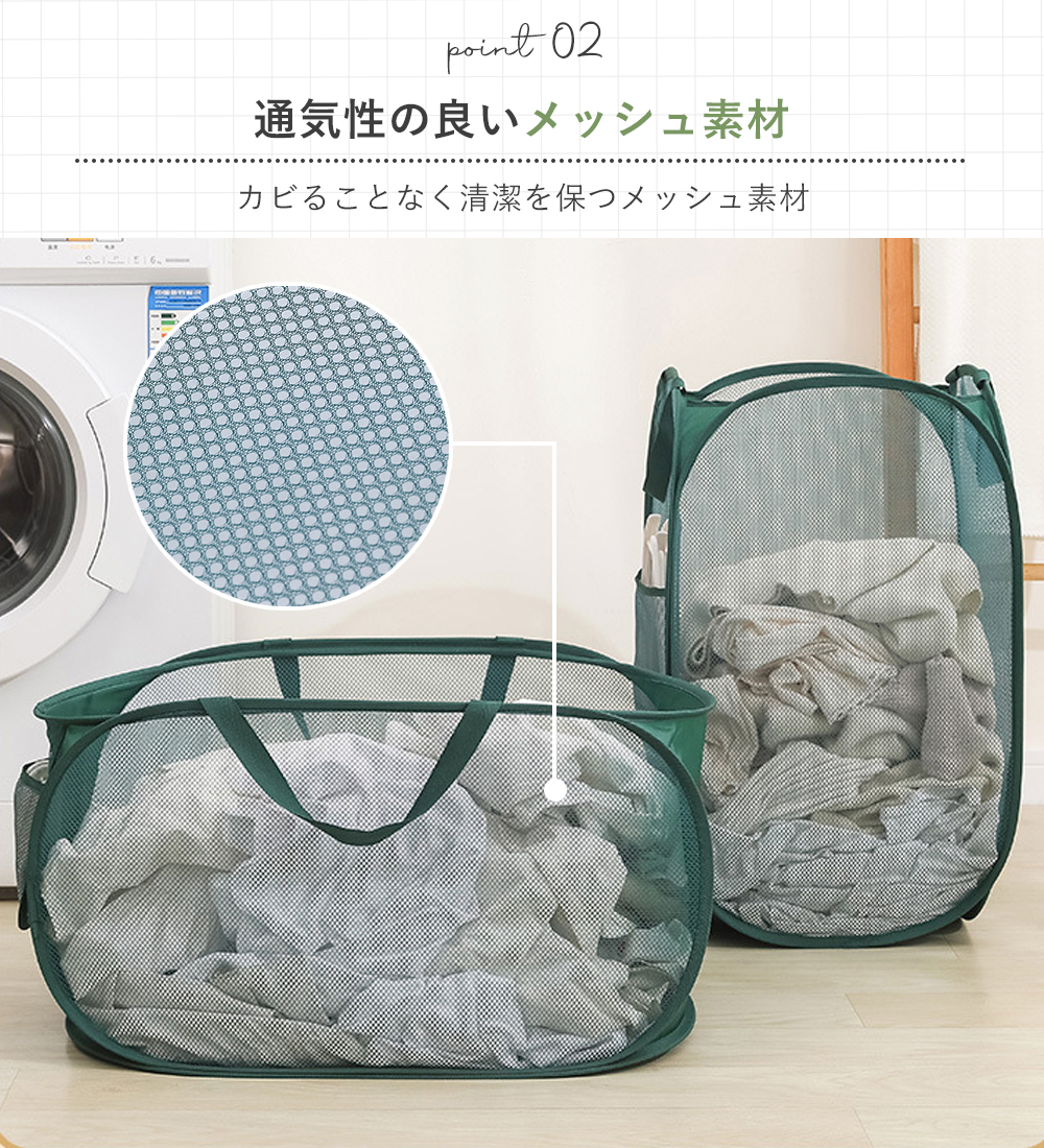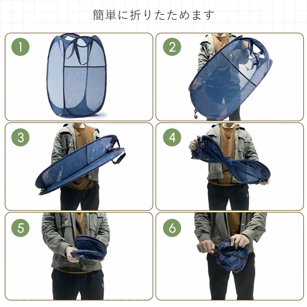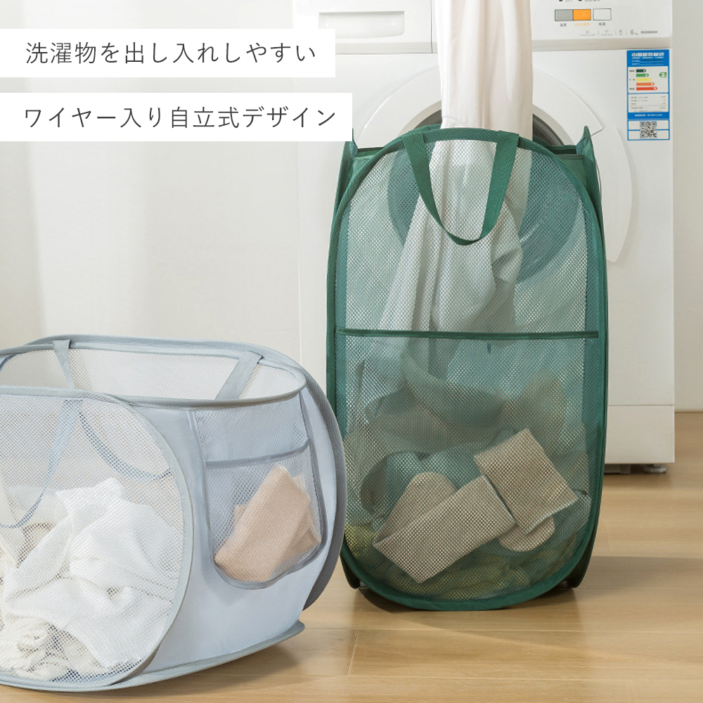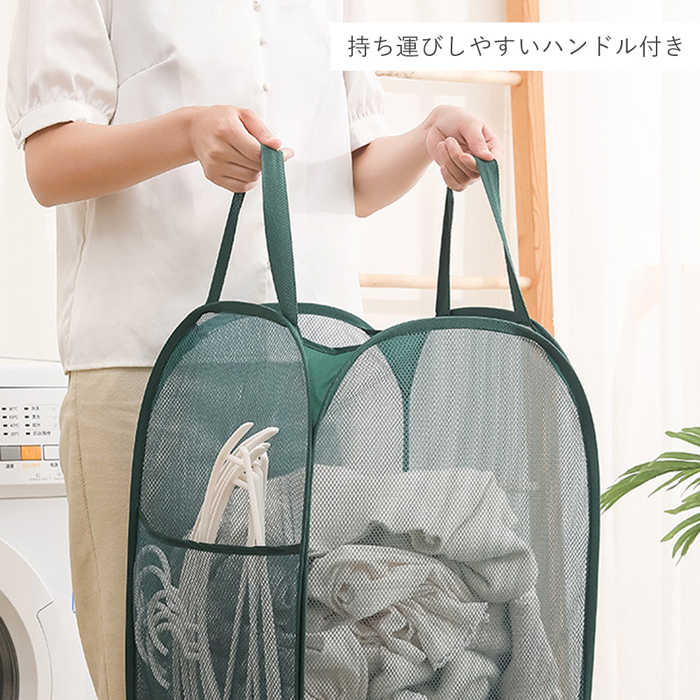ランドリーバスケット 洗濯カゴ 折りたたみ 大容量70L 自立 メッシュ 持ち運び 大きめ スリム ランドリーボックス 折り畳み 洗濯籠 洗濯物入れ 脱衣カゴ 軽量