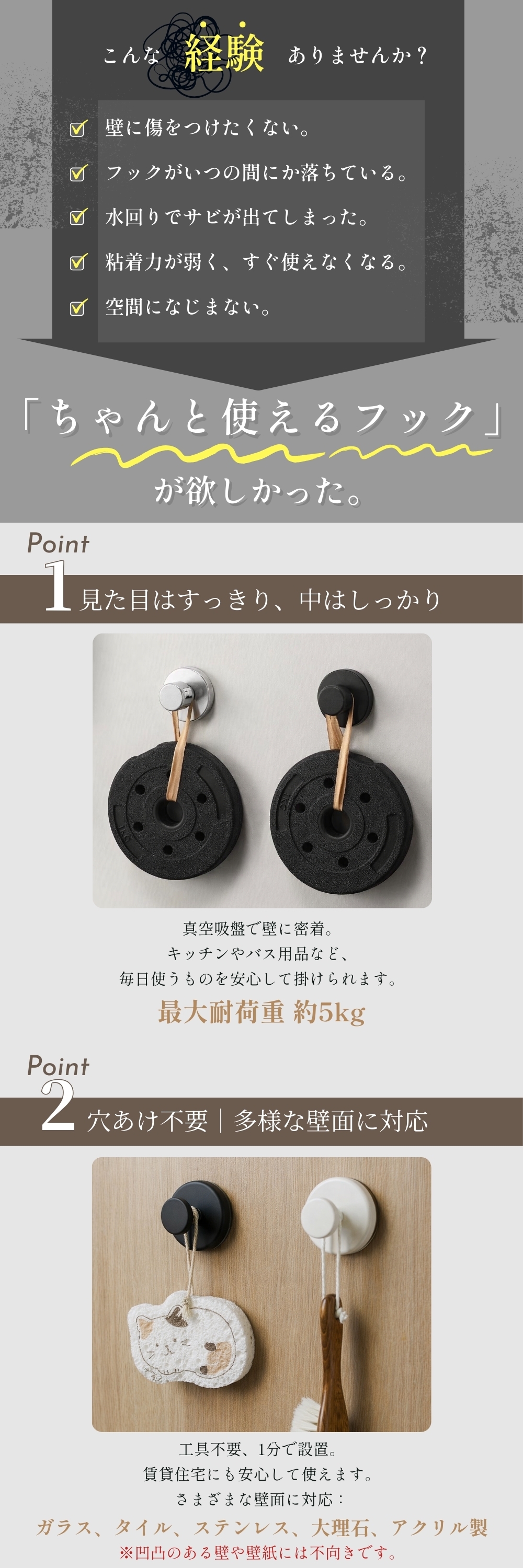 ■厚みのあるステンレス製フックで、安心の耐久性