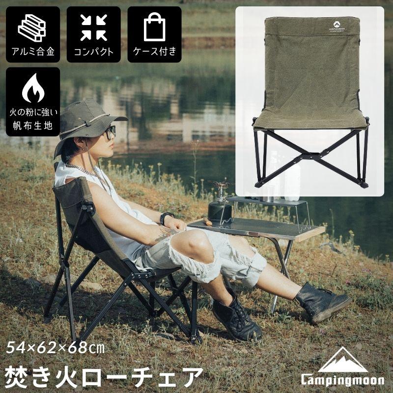 キャンピングムーン アウトドア チェア 折りたたみ椅子 焚き火チェア 焚火チェア タキビチェア ローチェア キャンプ コンパクト 折りたたみ 帆布 ケース カーキ