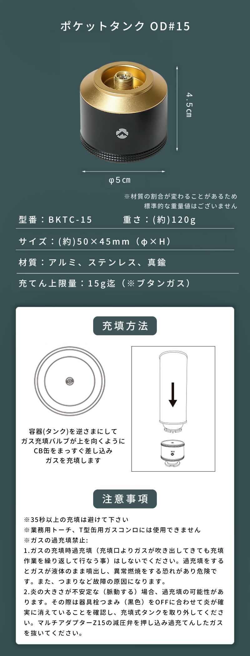 キャンピングムーン 充填タンク ポケットタンク 充てん式タンク 充てん タンク OD缶器具用 OD ガスランタン パワートーチ アタッチメント OD缶 キャンプ BKTC-15