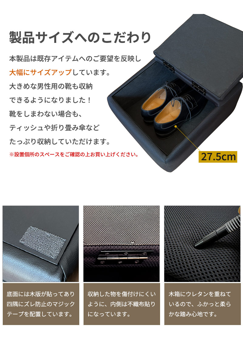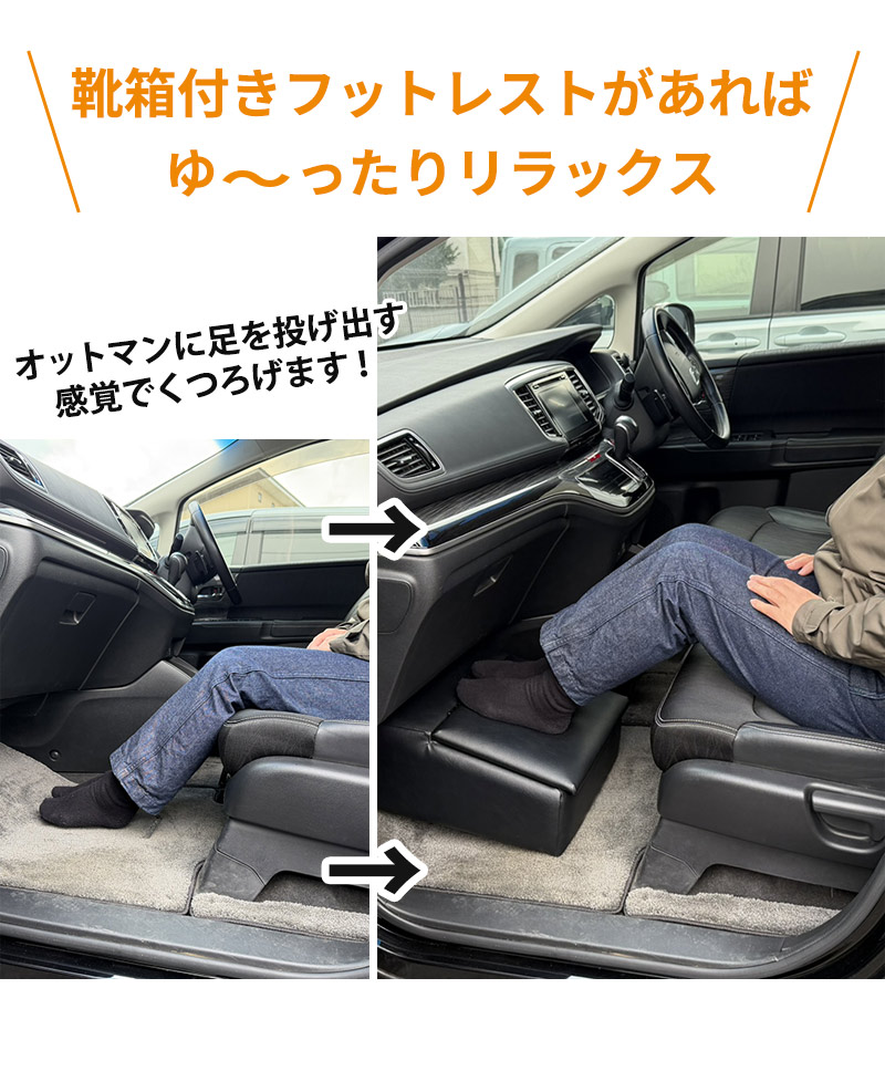 フットレスト レザー ブラック オットマン 踏み台 車用 靴箱 収納 ドライブ 快適 デスクワーク エコノミー症候群 シューズボックス 靴入れ シューズトレイ