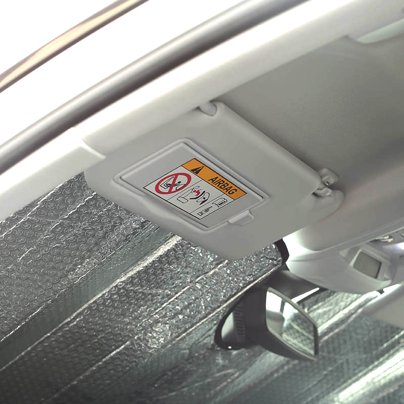 アルミ素材で日光を反射し、車内の温度上昇を軽減します。