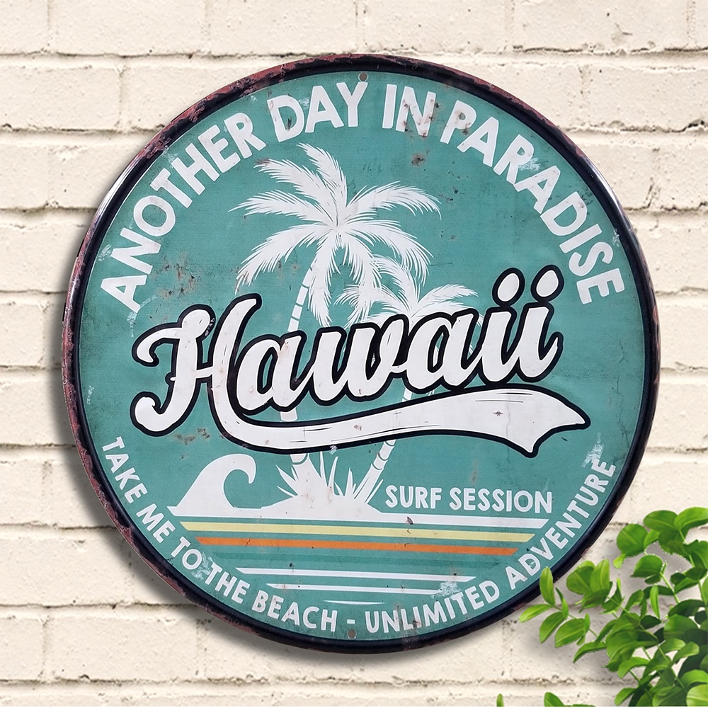 | 【ブリキ看板 e30e ハワイ ss】 金属製の個性的インテリアパネル ピンやフックを刺しての壁掛け、立てかけ。どなたでも簡単にお飾りいただけます。 |