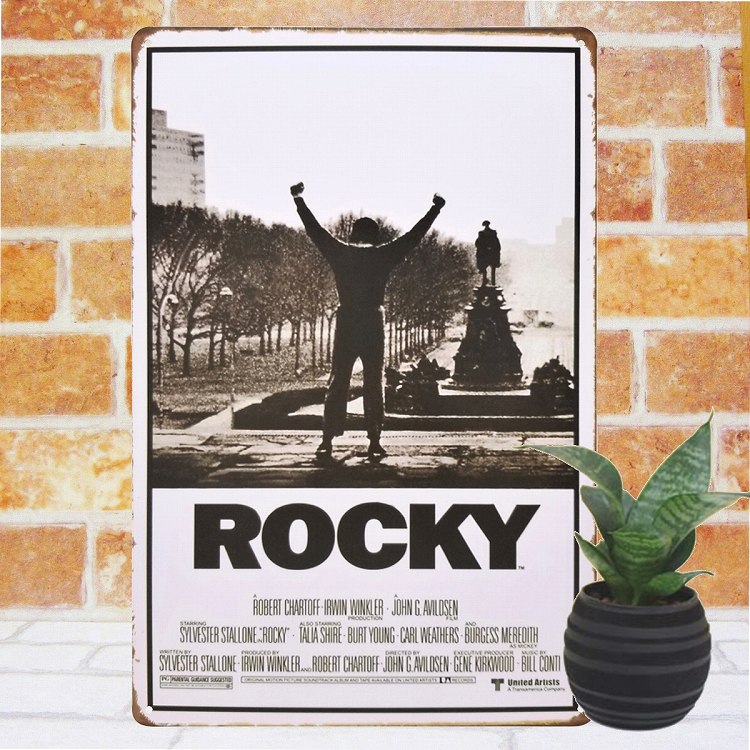 ブリキ看板 アメリカン雑貨 インテリア ボクシング 映画ポスター ロッキー 格闘技 キックボクシング グッズ 安い おしゃれ 白黒 モノクロ アメリカ雑貨