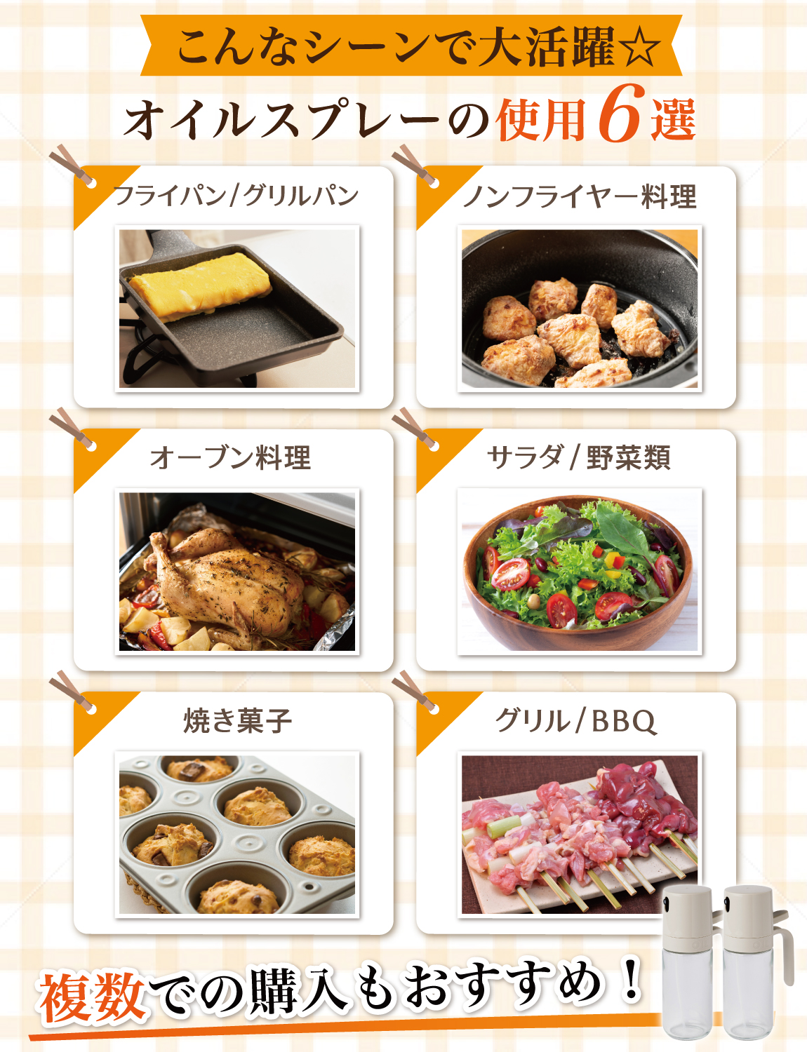 「適量のオイルをミスト状に霧化させて使いたい」「油引きのためスプレーしたい」という